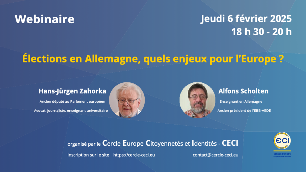 Le Cercle Europe Citoyennetés et Identités CECI propose jeudi 6 février un webinaire sur les enjeux européens des élections en Allemagne.