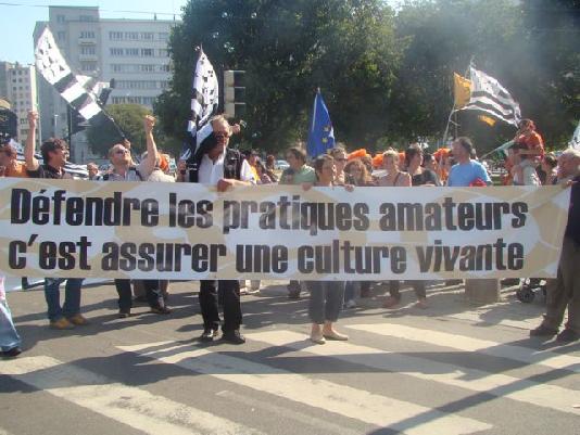 Bien que la ministre de la Culture madame Christine Albanel ait retiré son avant-projet de loi sur les pratiques amateurs, l\'ensemble des musiciens et des acteurs de la culture bretonne étaient mobilisés aujourd\'hui pour l\'enterrer et veiller à ce que l\'on ne le ressorte plus.