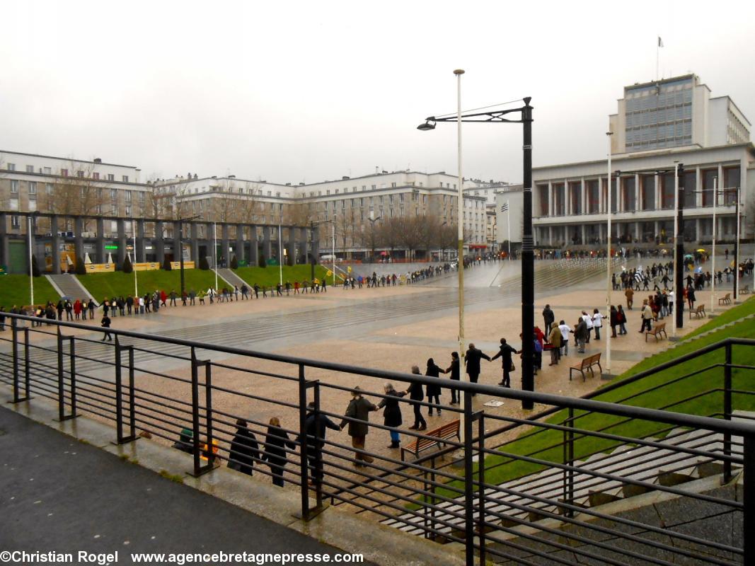 A Brest, un rassemblement de militants et de familles forment une chaîne pour une chaîne TV bilingue français-breton