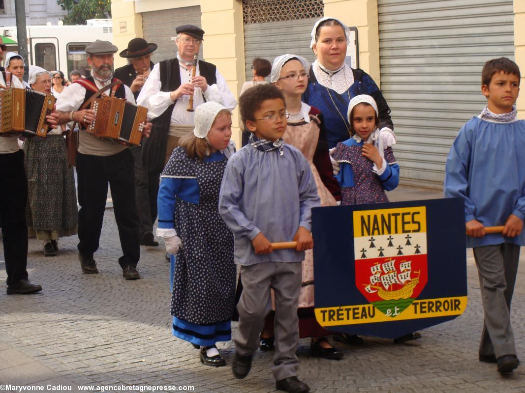 devant la vigne de la Commune libre du Bouffay. Après un verre, de muscadet, bien sûr, vin breton qui sera à l'honneur plus tard, ainsi que son frère le berligou, une parade bigarrée s'ébroue.Aussi sur ABP…Sonadeg Katell Kollet