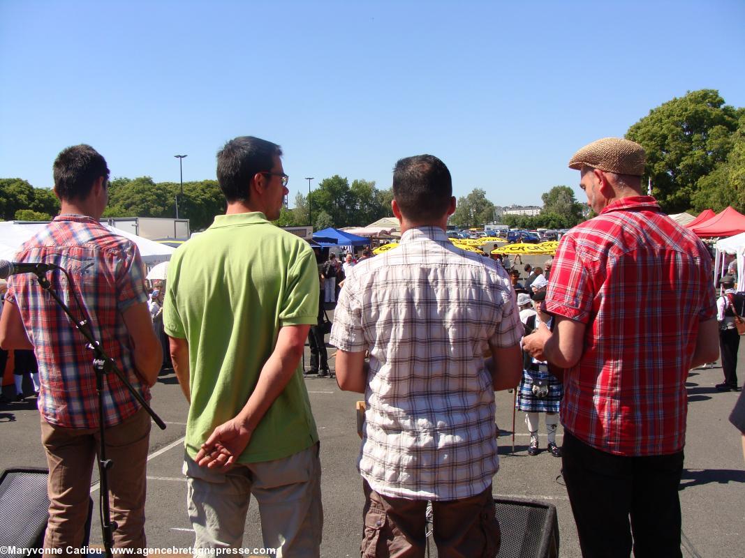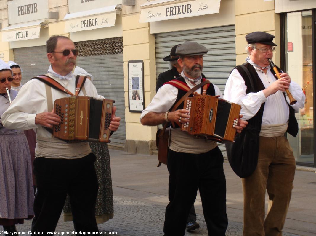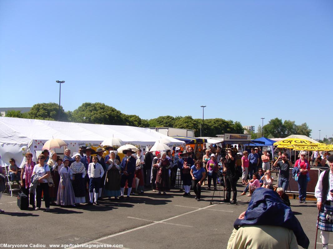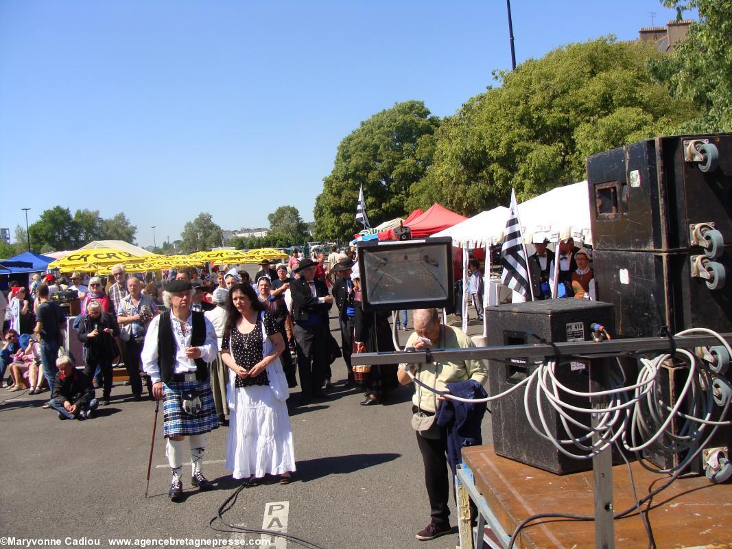 Sur le parcours, des badauds s'interrogent. Des hommes en kilts ? Des druides ? À quelle occasion ? Et voila un petit peu de pub à bon compte. Le soleil commence à taper, et devant la fontaine de la place Royale, le président du Comité des Vins bretons s'interroge sur l'idée d'y remplacer l'eau par du Muscadet !