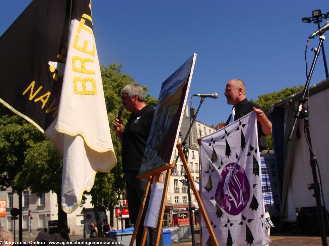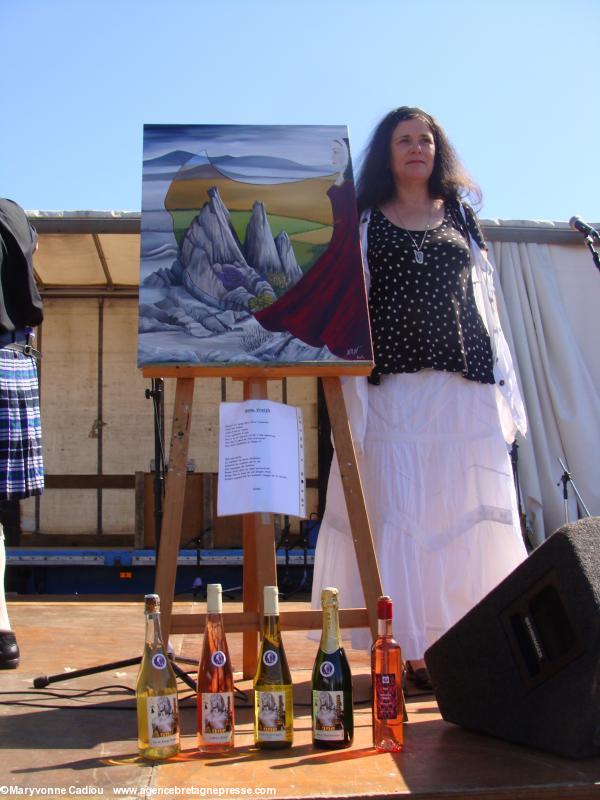 Commence la cérémonie tant attendue. Au centre de la scène, une toile pour Anne, réalisée par l'artiste Nan' accompagnée de son poème (PDF 1). Trônent aussi les bouteilles de vins bretons de la cuvée spéciale Anne de Bretagne, ainsi qu'une bouteille de Berligou, vin officiel de l'année Anne de Bretagne. Après un rapide discours de présentation du même président, décidément omniprésent - il fera ensuite le Monsieur Loyal - arrive un intense moment d'émotion. La duchesse Anne revient au premier plan.Aussi sur ABP…À Couëron grande soirée oenologique "Berligou" le 11 avril