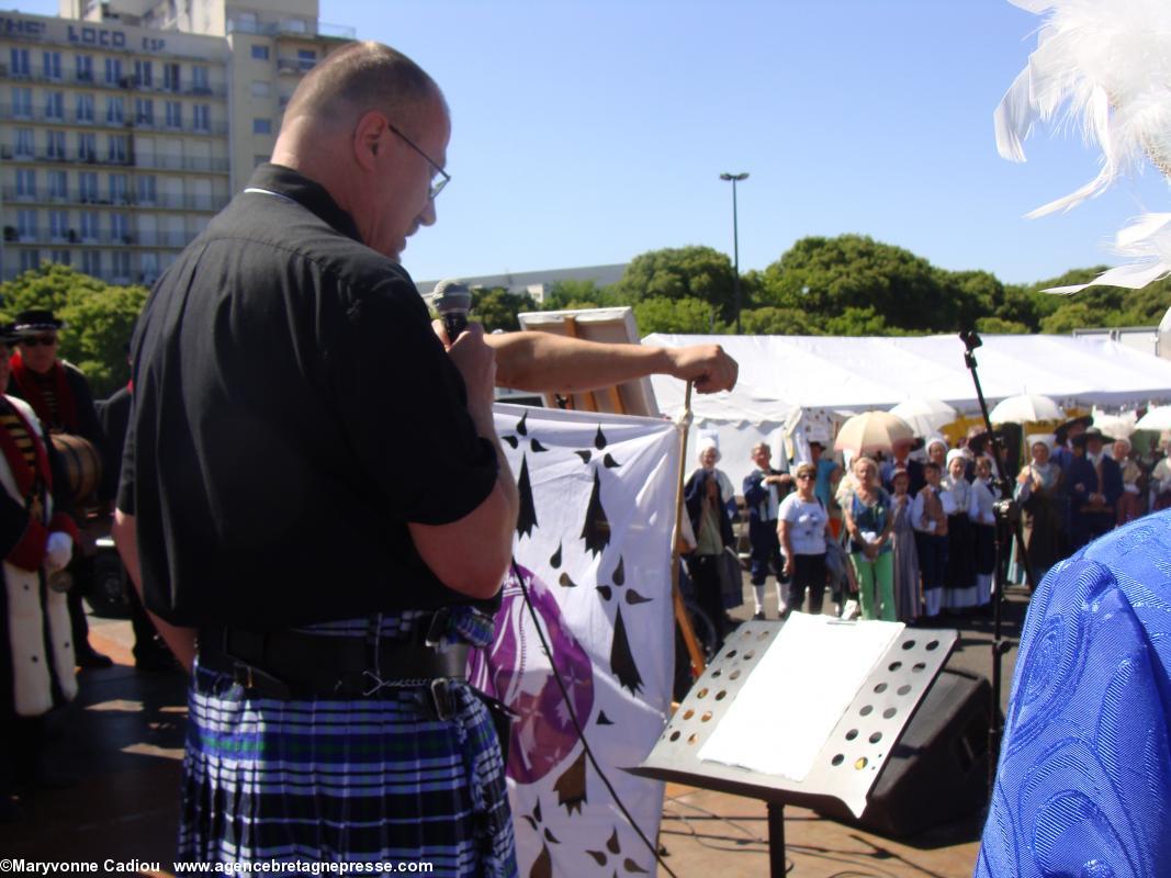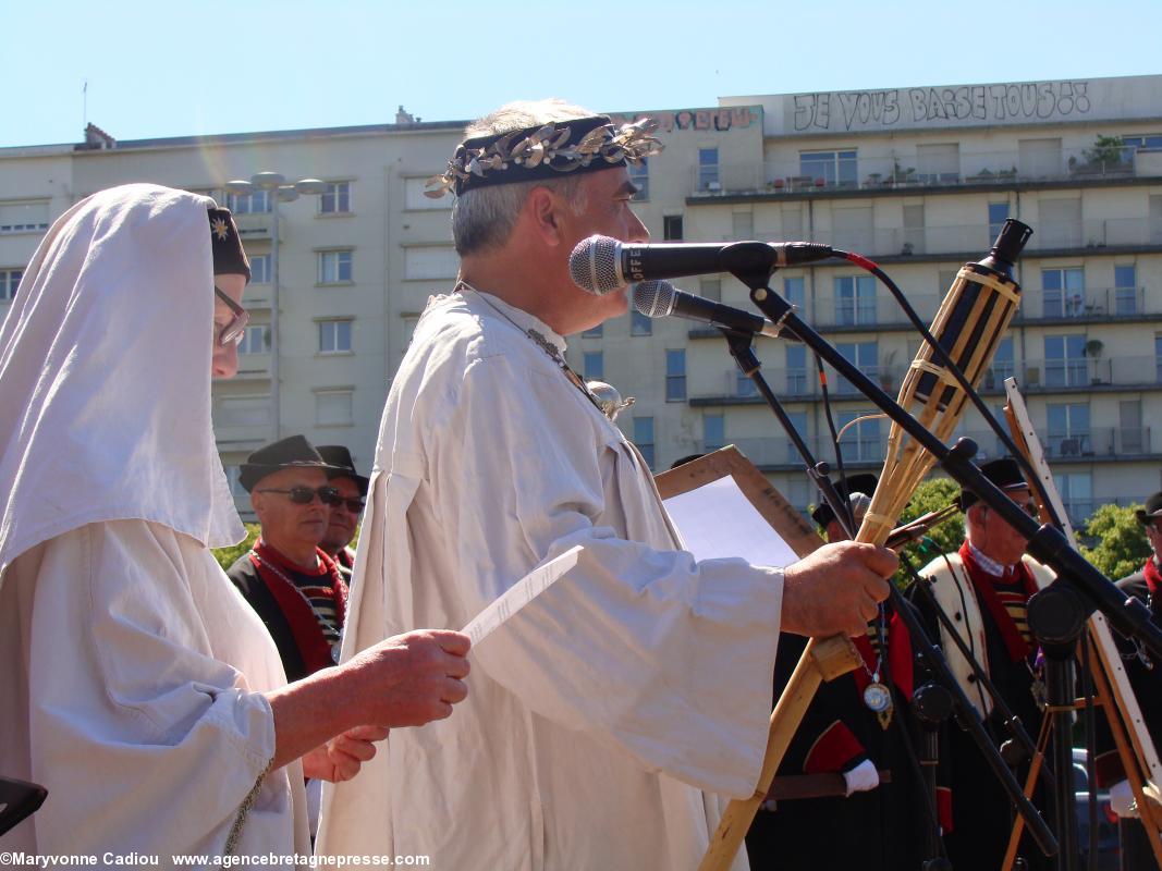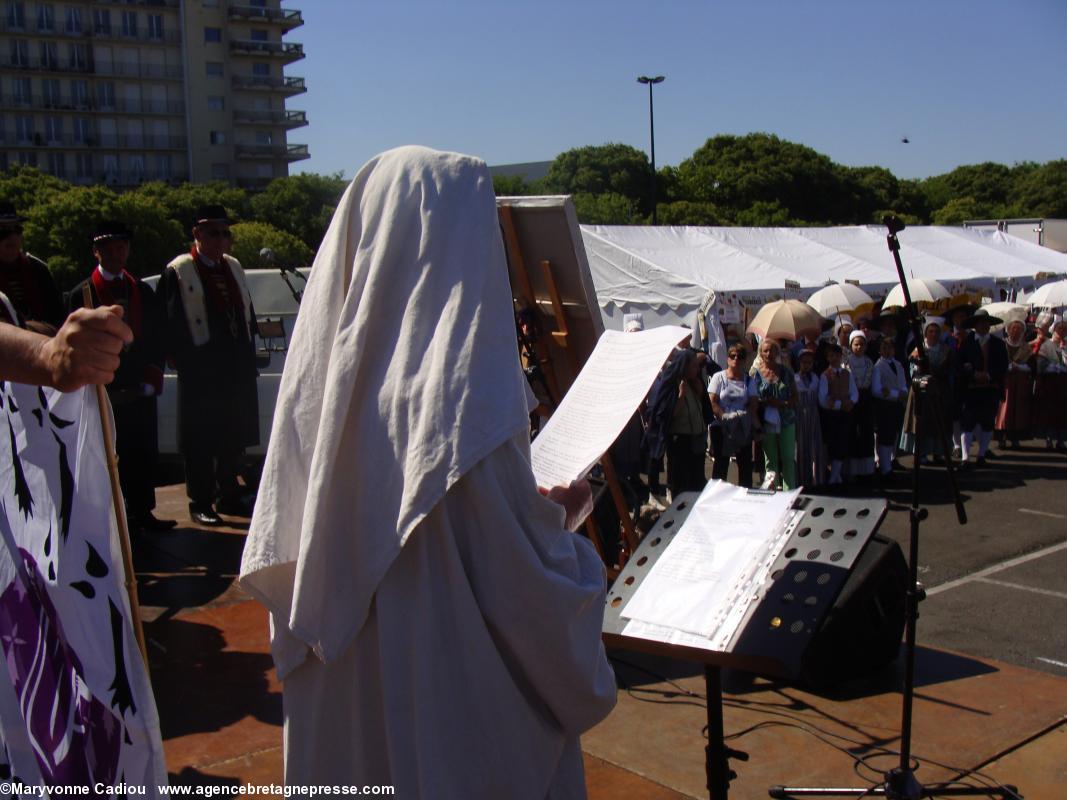 Enfin, le barde Askelleg (2), de la Gorsedd de Bretagne, lut son poème de la Grande Tablée "Anne ô ma duchesse" (PDF 4). Il est à remarquer que, sans concertation aucune, la lettre à Anne de Dider Ar Gov et le poème à Anne d'Askelleg traitent tous les deux du thème de l'actualité brûlante concernant la Bretagne et sa réunification que tous les Bretons espèrent...
