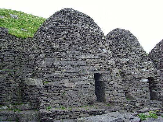 - Huttes de pierres en nids d\'abeilles de l\'ancien ermitage celtique des Îles Skellig au large de la côte du Kerry en Irlande.