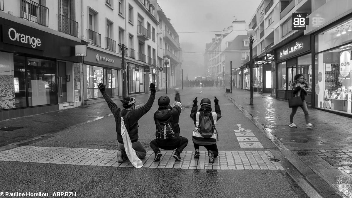 Partis de l'ancienne base sous-marine, les manifestants se sont dirigés vers le centre ville où des échanges de projectiles ont eu lieu face à la Préfecture et au Commissariat de police. Le commissariat aurait failli prendre feu suite à l'impact d'un projectile incendiaire. La police a utilisé des grenades de désencerclement et beaucoup de gaz lacrymogène.