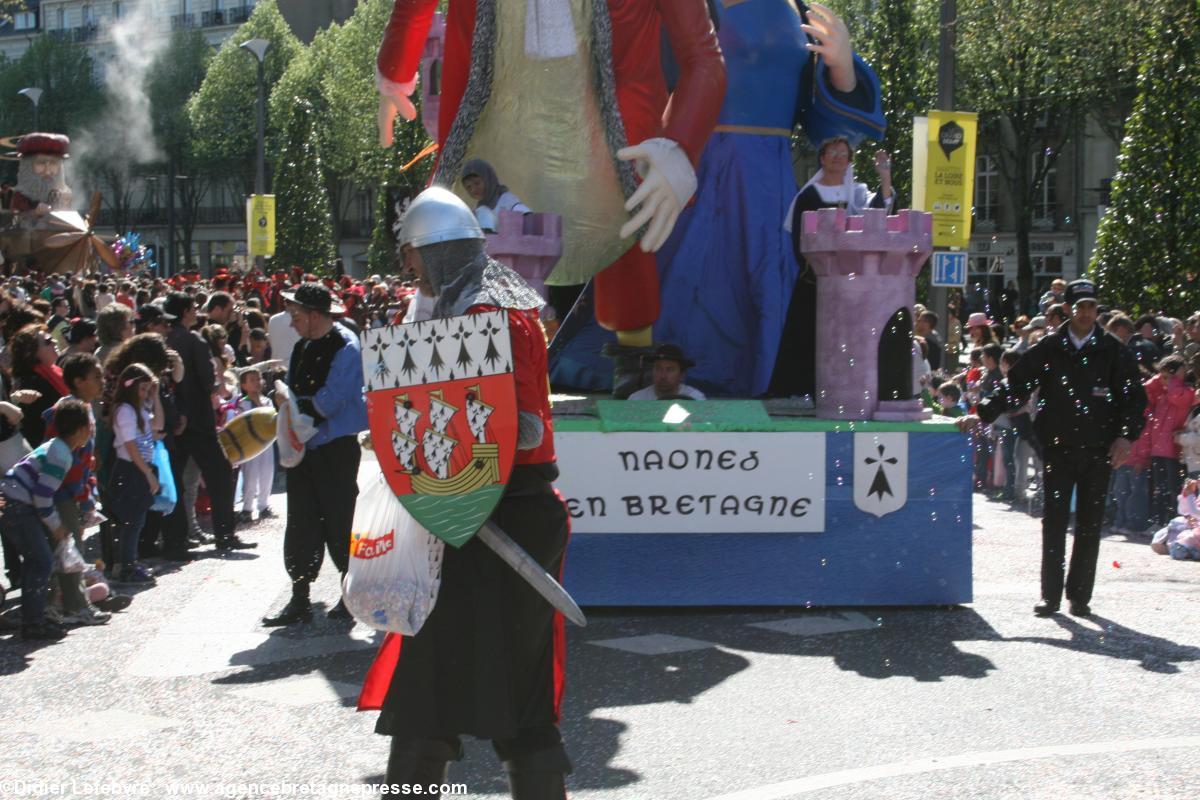 Tout se déroule formidablement bien pour l'édition 2105 du carnaval à Nantes. Environ 300 000 personnes attendues pour voir les trois défilés, celui de ce jour était le premier. Un roi, Alan Simon http://www.simonalan.com/ avec ses amis de tous ses grands spectacles, inaugurant le défilé, sur un char en l'honneur d'Excalibur. Plus loin, un char dédié à Anne de Bretagne et au roi Louis XII. Créé par l'association Les Alans, dont le président Alan Codet est un fier défenseur d'une Bretagne à cinq départements. De la Bretagne, en un mot. Ce char était précédé d'un Gwenn ha Du.300 000 personnes ont applaudi (ou vont applaudir) des airs de Excalibur et de Anne de Bretagne