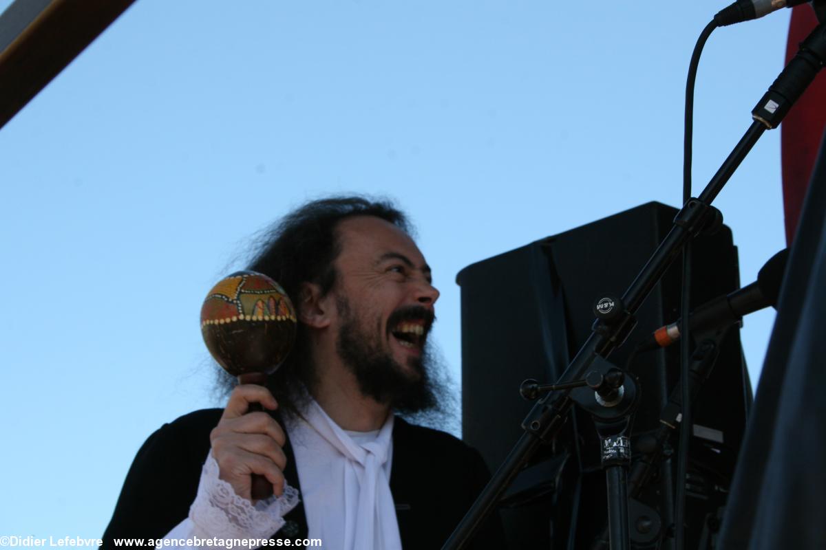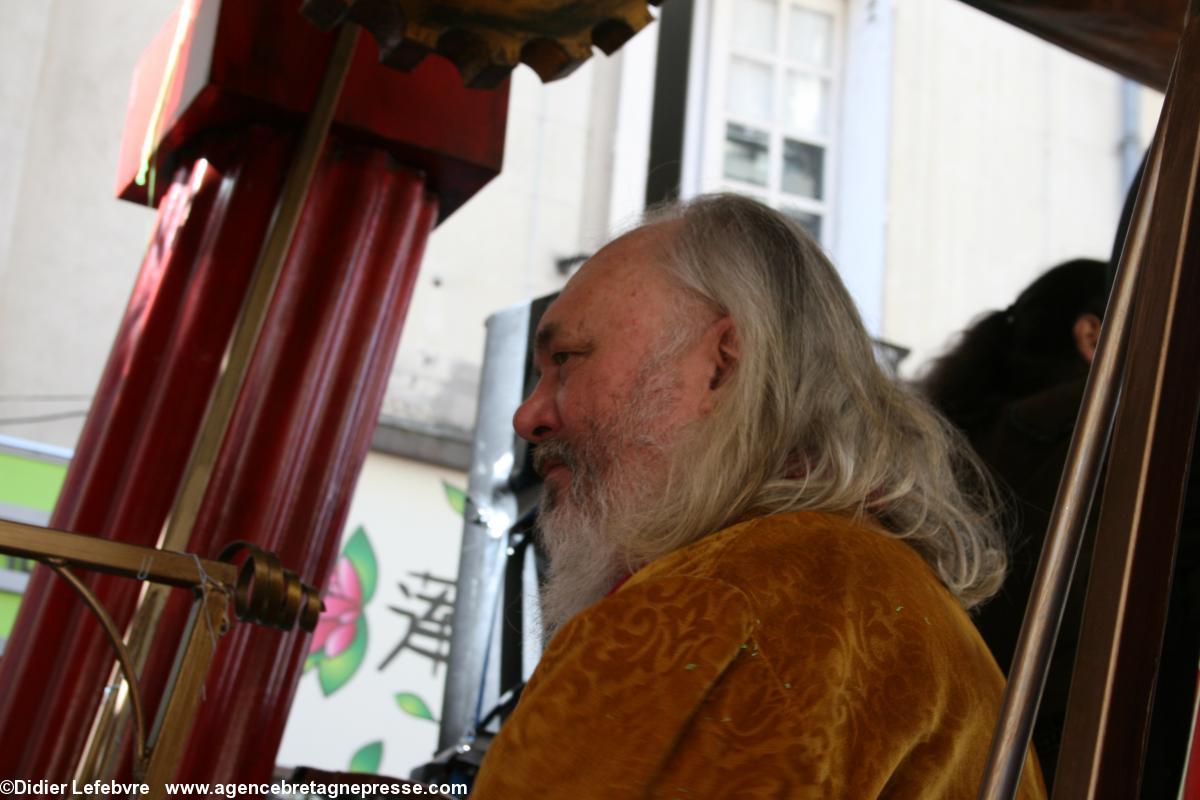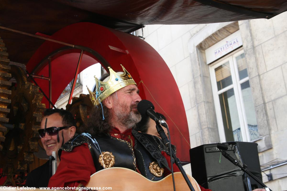Nous annoncions ce carnaval dans nos colonnes,, mais n'avions pas imaginé son succès, ni le bonheur d'Alan Simon. " Ce fut une surprise, mais aussi, je mesure l'honneur qui m'est fait, qui nous est fait ", nous explique Alan fou de joie à la fin du défilé. " Mon nom a circulé dans le milieu des festivaliers à la fin de l'année dernière. Je pense que l'opéra rock Anne de Bretagne y est pour beaucoup, mais aussi les autres spectacles, tels Excalibur et Tristan et Yseult. Je les remercie tous, qui m'ont choisi comme leur roi. Jeune enfant, j'adorais aller au carnaval ". Alan Simon, ensuite, dit qu'il est heureux d'avoir pu venir avec ses amis, musiciens ou chanteurs, que l'on a vus dans ses opéras rocks, Anne de Bretagne, Excalibur, Tristan et Yseult, Cap'tain Kid. Sur le char, on reconnaît Marco (il y en a deux), Massino, Roberto, Paola, Louis, Tristan et Christian Décamps (vous savez, celui de Ange), Konan Mevel (aussi de Tri Yann) et la très dynamique Michelle Gaurin. Une vraie fête sur le plateau mobile.Aussi sur ABP…Carnaval de Nantes : Alan Simon en sera le roi, Anne de Bretagne la duchesse