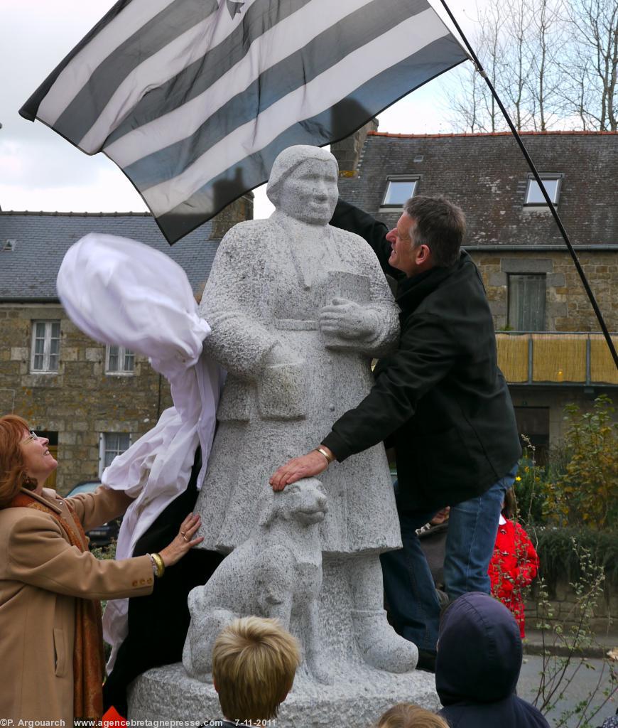 Hier, dimanche 6 novembre, sous un beau soleil de novembre, on inaugurait la statue en granit de la poétesse bretonne Anjela Duval (1905-1981). Plusieurs centaines de personnes dont beaucoup d'habitants du Vieux Marché s'étaient rassemblées pour les festivités, conviées par les associations Chas Plasenn Anjela Duval et Traoñ an Dour.