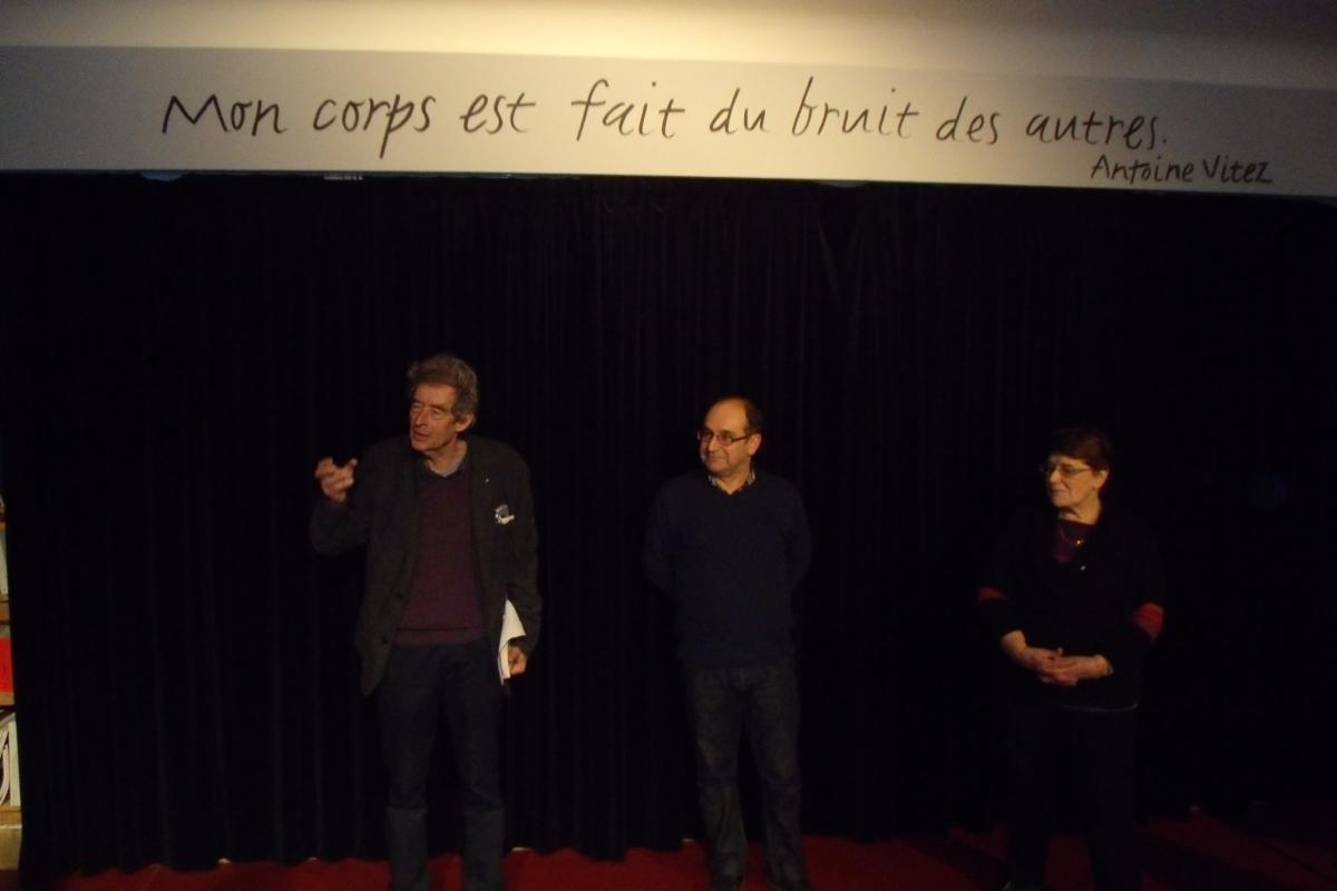 Intense émotion aussi, quand les comédiens amateurs de Kentelioù an Noz http://www.breton-nantes.org/index.php?option=com_content&view=article&id=2%3Anos-activites&catid=4%3Acours-et-activites&Itemid=4&lang=fr mettent en scène trois poèmes de Angèle Jacq (3). Ces textes ont une nouvelle vie à travers cette troupe. Le fameux Patatez (4) prend une nouvelle dimension. Angèle Jacq, mi-surprise, mi-amusée de cette interprétation vivante nous expliquera à la fin combien elle a apprécié cette relecture.« Il faut apprendre ses textes par corps insiste Michel Valmer, co-fondateur et co-directeur artistique de la Salle Vasse.