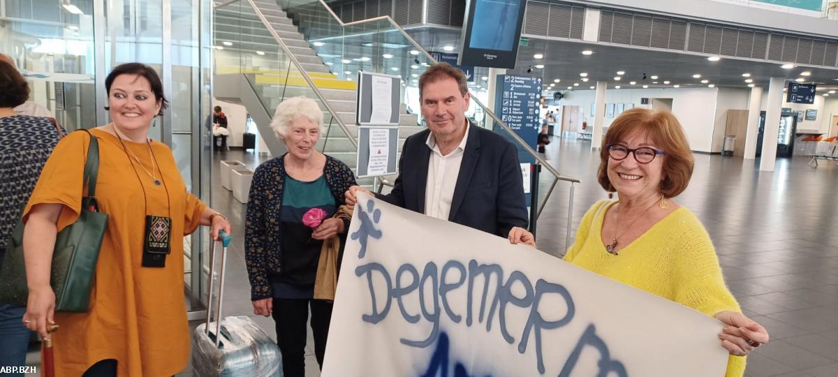 Un comité d'accueil avec une bannière de bienvenue en breton avait fait le déplacement. Christian Troadec, Lena Louarn, Rozenn Millin et Riwanon Kervella ont souhaité la bienvenue à une femme, "venue de l'est", emblématique de la langue bretonne. Anna sera présente à la projection du documentaire Teir flac'h deuet eus ar Reter / Trois femmes venues de l'Est avec l'équipe du tournage dans le cadre du Festival interceltique de Lorient le 10 août. Elle est une de ces trois femmes qui font honneur à la Bretagne.