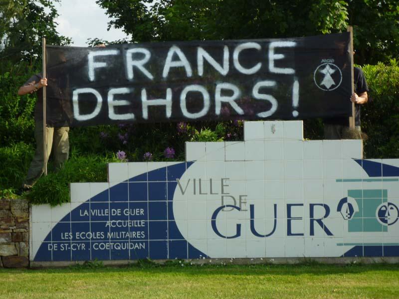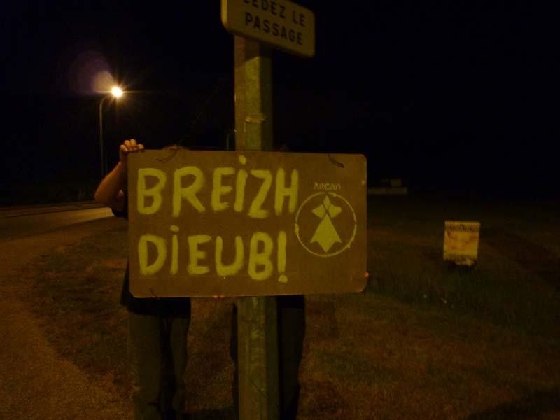 Envisagez-vous de durcir vos actions ? Nous constatons que des groupes ont commencé à faire des tags « Bzh Libre, Bzh Dieub » sur l'envers de panneaux routiers, notamment dans le Pays de Lorient. D'autres actions plus dures sont peut-être envisagées par d'autres groupes comme des jets de peinture sur des symboles de l'occupation française tels que les perceptions, les bases militaires, les gendarmeries. A chaque groupe, sous sa propre responsabilité, de définir ses actions de résistance civile et à condition qu'aucun risque à l'égard des personnes tierces ne soit pris. Si des actions dangereuses pour les personnes étaient réalisées, elles ne pourraient provenir que de manipulations de notre ennemi français coutumier de ces faits de provocation et ceci afin de justifier une répression aveugle.