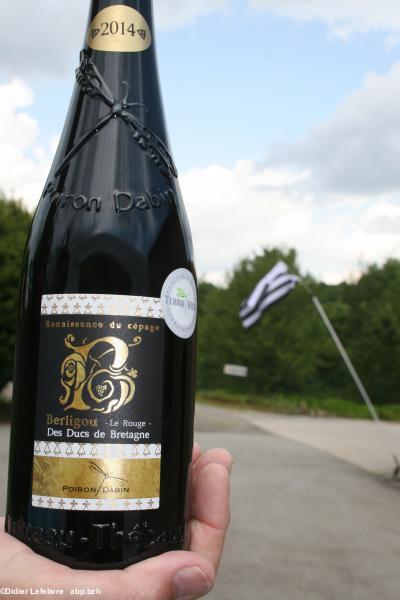 Sur le col de la bouteille de rosé, vous remarquerez la petite pastille du comité Anne de Bretagne. Celui-ci soutient en effet le domaine Poiron-Dabin dans leur initiative de relancer le Berligou. D'ailleurs, nous remarquons la présence de Jacques-Yves le Touze et Dider ar Gov, fondateur et membre du Comité Anne de Bretagne. On se souvient notamment du lancement de l'année Anne de Bretagne en décembre 2013, au château des ducs de Bretagne, en présence de Berligou, produit, mais sans but lucratif, par l'association " Le Berligou ". La veille au soir, une fête au Château de la Groulais à Blain, organisée d'ailleurs par l'association en accord avec Jacky Flippot, réunissait les protagonistes : voir la page du Comité Anne de Bretagne https://annedebretagne2014.wordpress.com/ et celle de l'association Le Berligou : http://leberligou.unblog.fr/2016/05/29/soiree-de-prestige-au-chateau-de-la-groulais-a-blain-avec-le-lancement-officiel-des-berligou-rose-et-rouge-du-domaine-poiron-dabin-270516/ . L'Institut culturel de Bretagne avait également mis à disposition ses panneaux, sur l'histoire de notre duchesse.Fin de journée chez Pierre-Yves Lusseaud, et son désormais célèbre Celticae