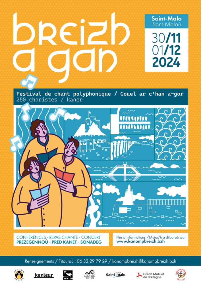 Cette année encore, le Breizh a Gan, grand festival de chant choral breton, se tiendra sur deux jours : le samedi 30 novembre et le dimanche 1er décembre 2024 à Saint-Malo. Par ailleurs, pour sa 42e édition, la Fédération Kanomp Breizh souhaite mettre à l'honneur le chant polyphonique en langue bretonne.