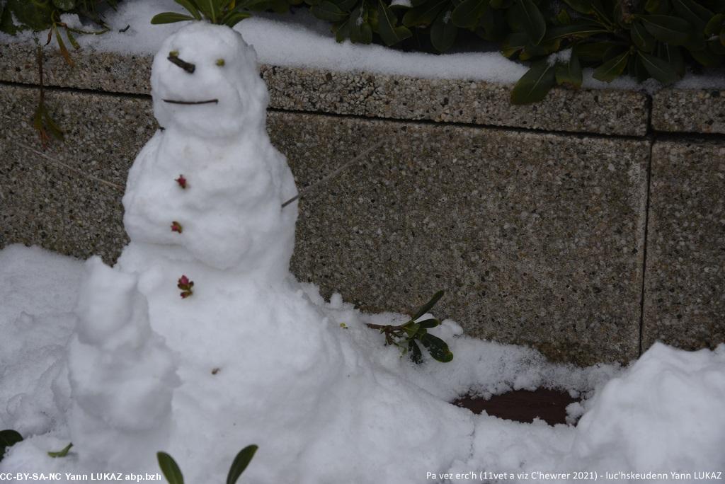 - Konk-Kerne, boulomig-erc'h dirak ar mor. Concarneau, bonhomme de neige face à la mer.