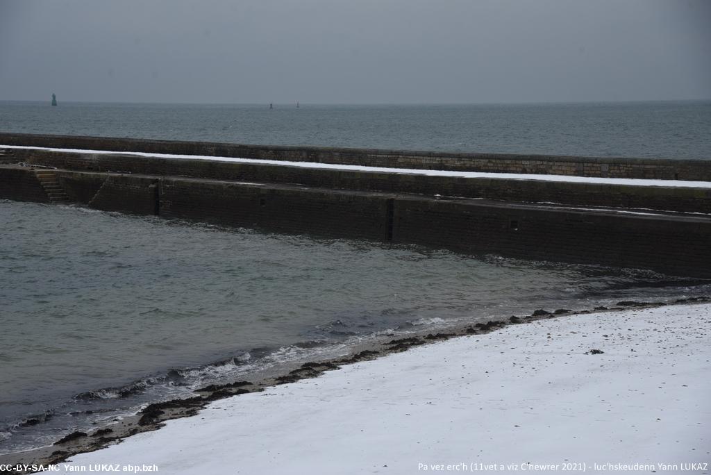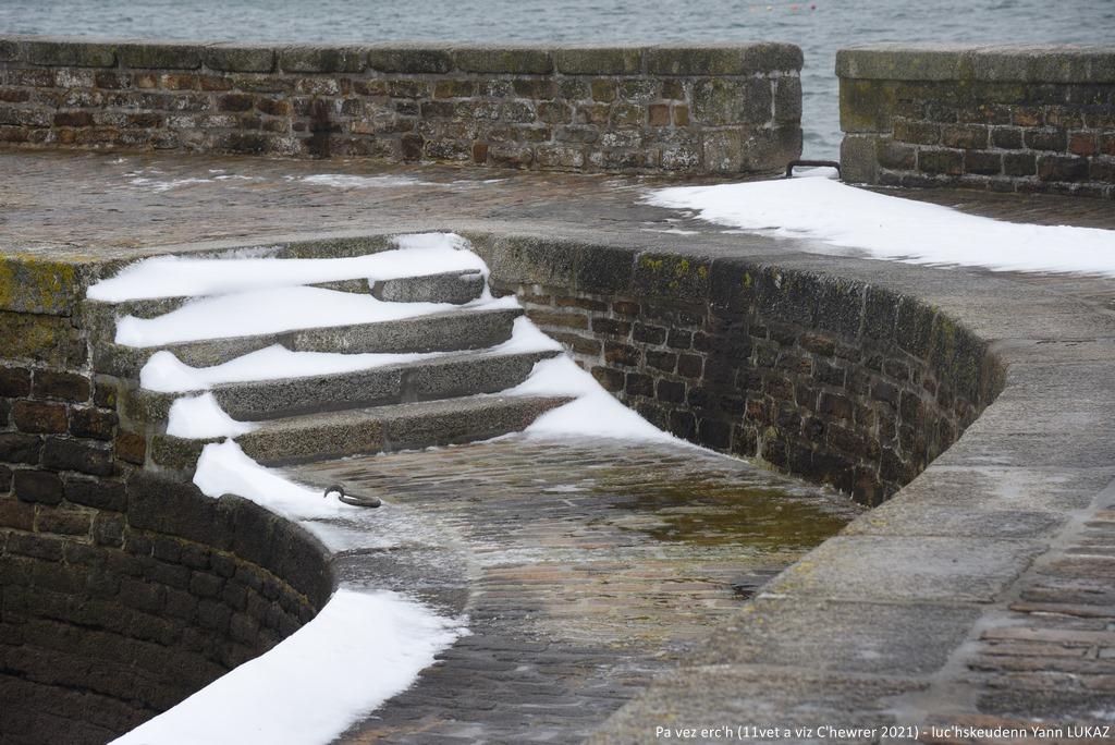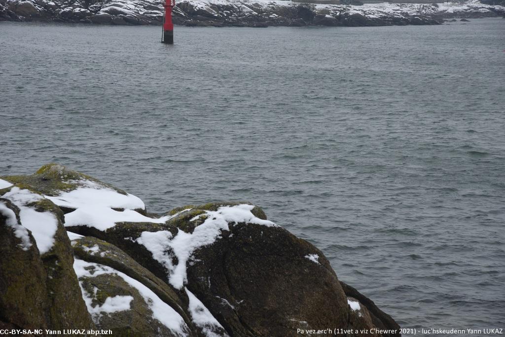 Ur valeadenn ouzh ar mor (ar porzh, an aod) e Konk-Kerne, gwennaet gant an erc'h. Fotoioù. MAJ.