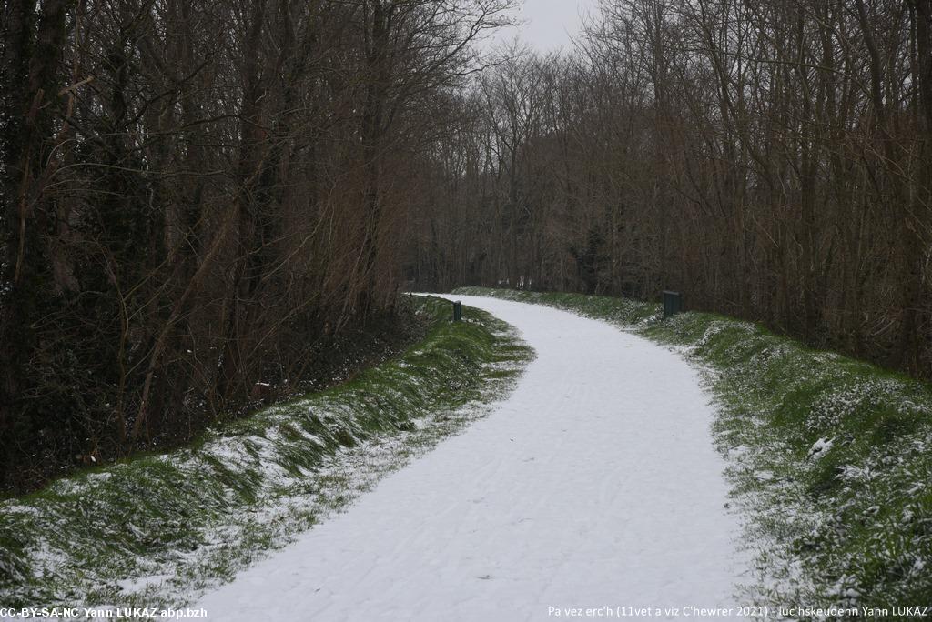 Ral eo e Breizh. Ar wech ziwezhat e oa ur pemzek bloaz bennaket, a lâr tud zo. Dalc’het m’eus soñj eus ur bloavezh, e prantad vakansoù Nedeleg ma vugaleaj, e Kreiz-Breizh. Erc’h a oa e pep-lec’h : dre ar maezioù, ma veze c'hoazh girzhi tro-dro dezhe, war an toennoù maen-glas. Gwenojennoù bihan a oa bet graet gant palioù evit ma c’hellfe an dud mont ha dont, ha kenderc’hel gant o labour aze hag a-hont, tro-dro d’an ti-feurm. Ul labour lakaet da ziaes evit a re vraz, mes ur burzhud gwenn-erc’h evit ar vugale.