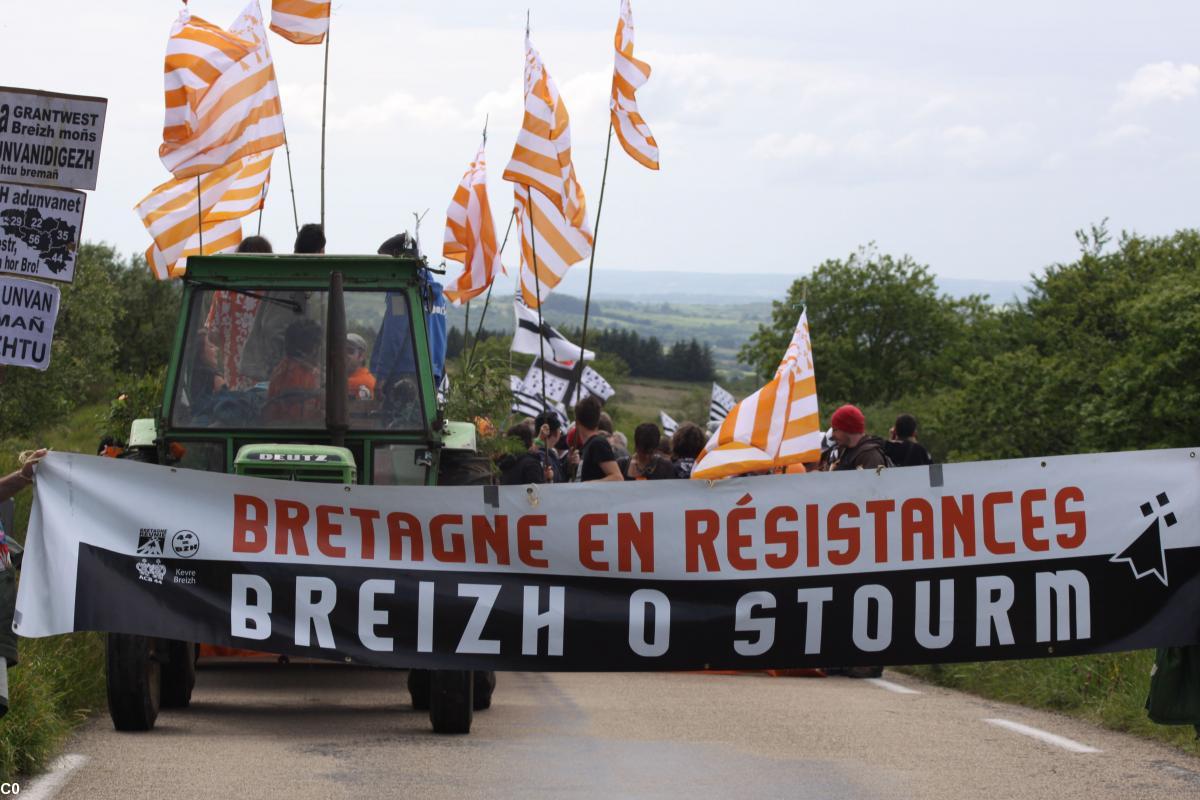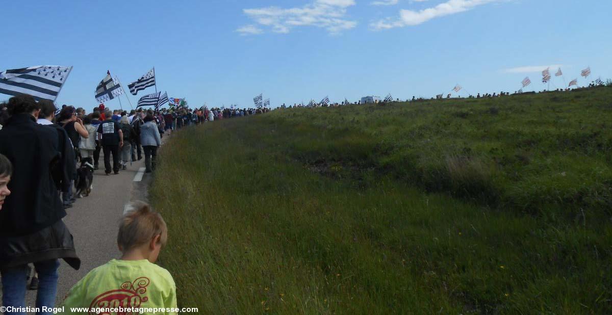 S’ensuivit une marche de plusieurs kilomètres effectuée par environ 600 personnes en direction de l'antenne géante de l'émetteur relais de Roc'h Trédudon. Parmi eux des représentants de nombreuses association comme Diwan, Div yez, DihunJean-Yves Bourriau, pour Bretagne Réunie , Yannig Baron de Breizh Impacte , de nombreux Bonnets Rouges et les élus déjà cités.