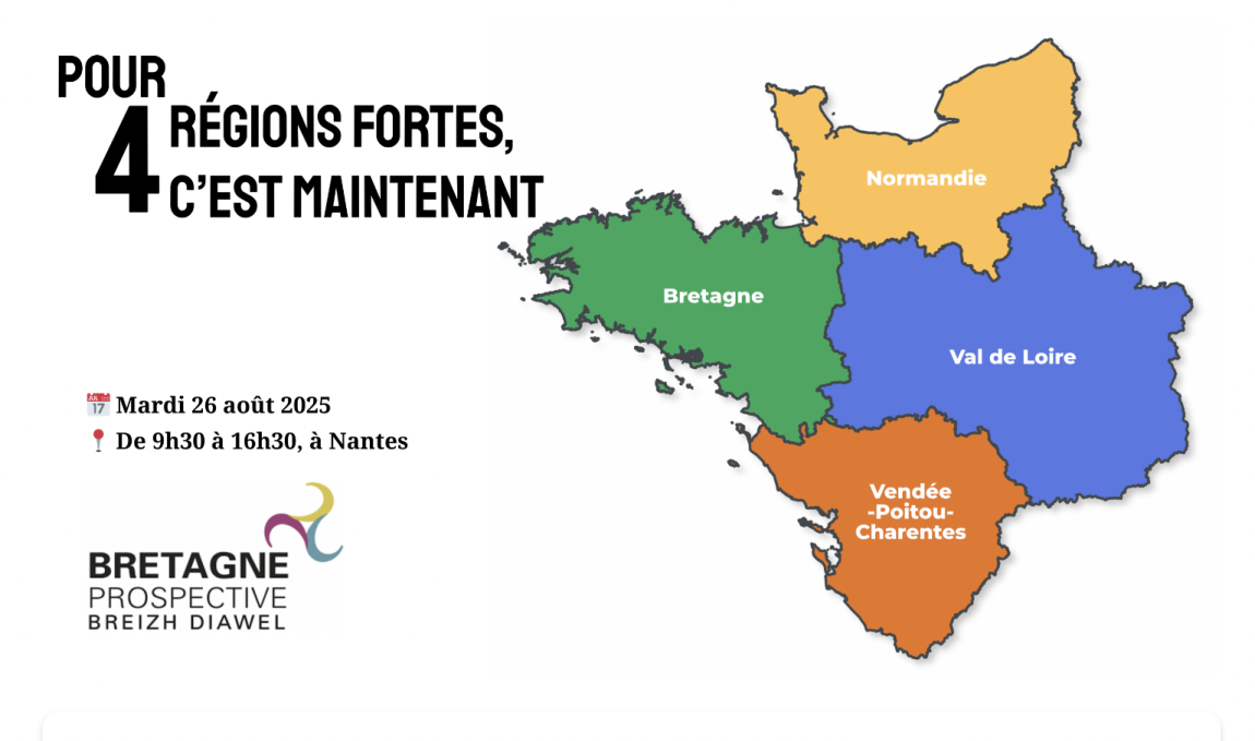 Bretagne Prospective organise son Université d'Été 2025 autour d'un thème ambitieux : " Pour 4 régions fortes, c'est maintenant ". L'événement réunira à l'École de design des personnalités venues de toute la France pour partager visions, expériences et pistes d'action en faveur de territoires plus harmonieux, attractifs et ouverts sur l'Europe.