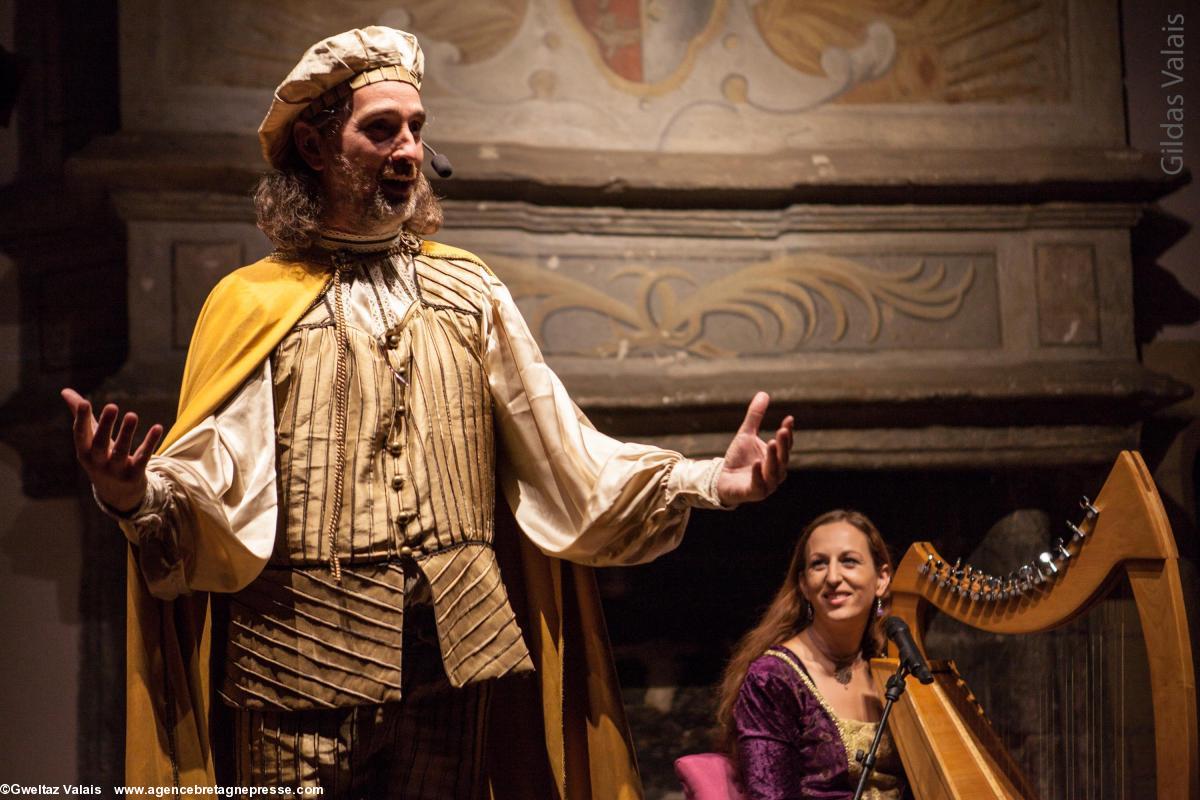 - Château de Goulaine - Si Anne m'était contée - le spectacle, Alan Simon conte, Nathalie à la harpe