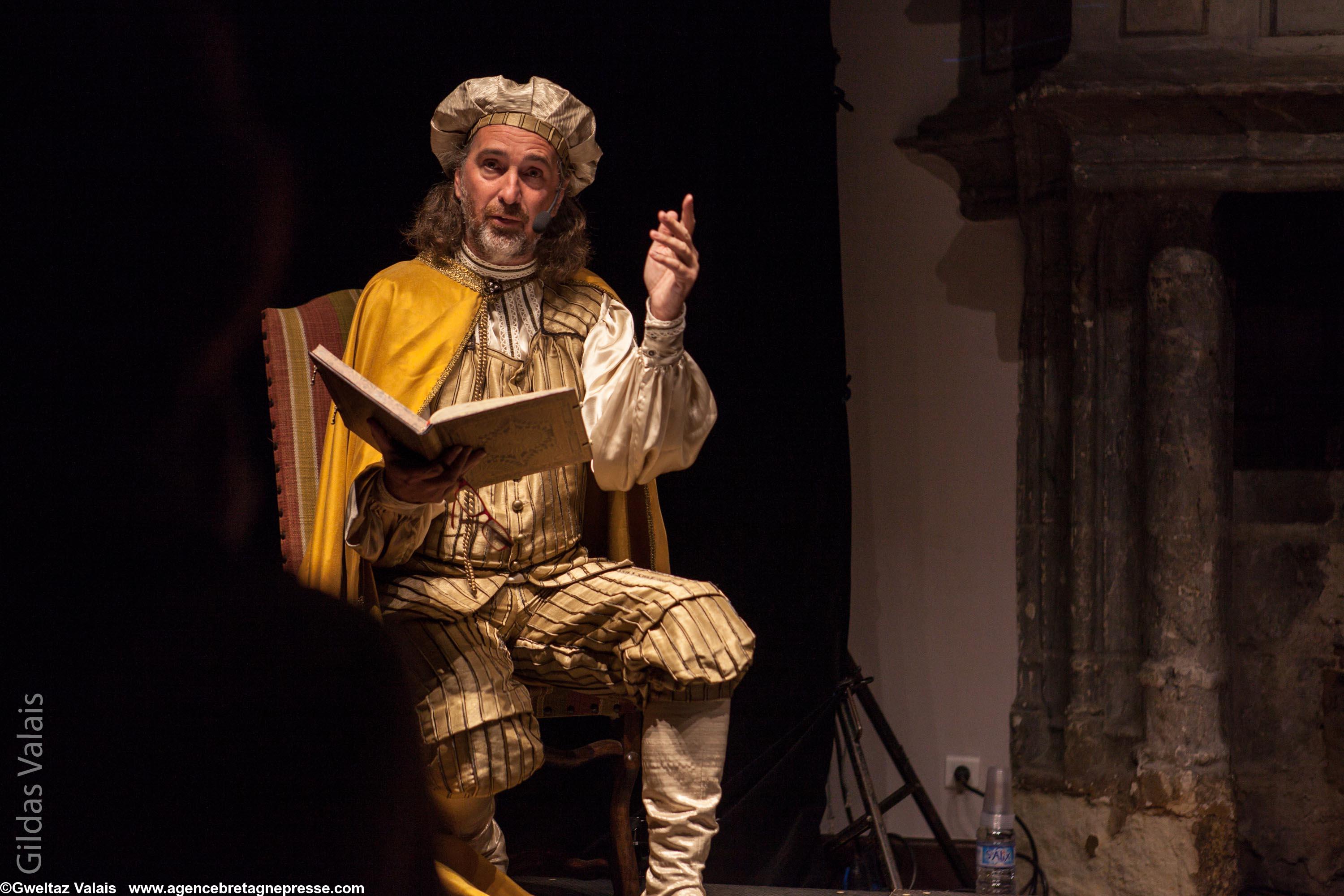 Après les fastes de l'opéra-rock Anne de Bretagne au Théâtre Anne de Bretagne puis au Zénith de Nantes en septembre, Alan Simon http://www.simonalan.com/ nous a réservé une surprise. Devant une petite centaine de personnes, dans la grande salle du rez-de-chaussée du château de Goulaine, il nous a préparé une soirée contée http://www.chateaudegoulaine.fr/1960-si-anne-de-bretagne-metait-contee.html, avec la délicieuse chanteuse Nathalie (du groupe Dana). Une soirée très intimiste, où Michel-Ange-Alan Simon nous raconta, souvent avec humour, la vie de la duchesse, tournant les pages d'un livre que l'on sent merveilleux. Son récit était accompagné de la harpe de Nathalie en fond délicat.Nathalie offre sa voix à la Bretagne
