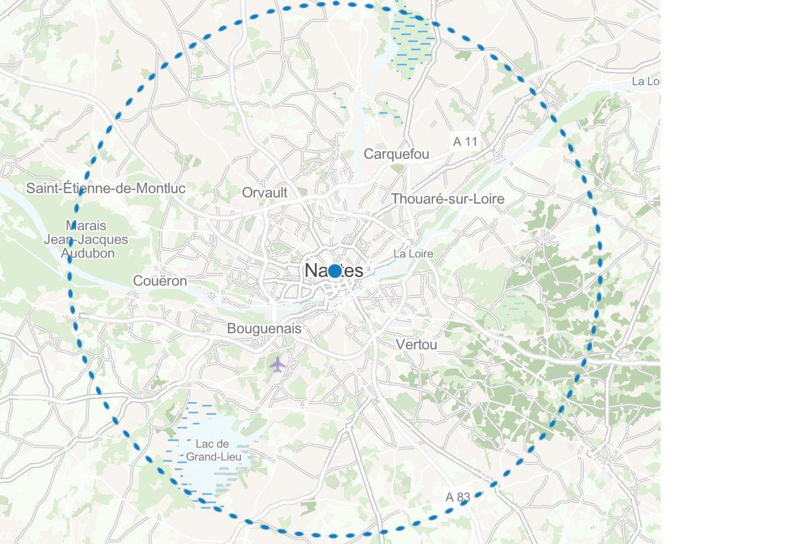 ESRI France a mis en place une carte interactive pour vous montrer votre zone de plein air de 20km de rayon autour de votre domicile.