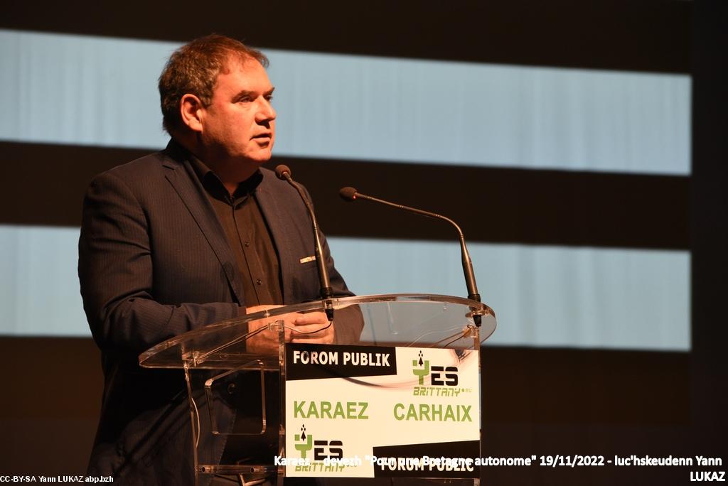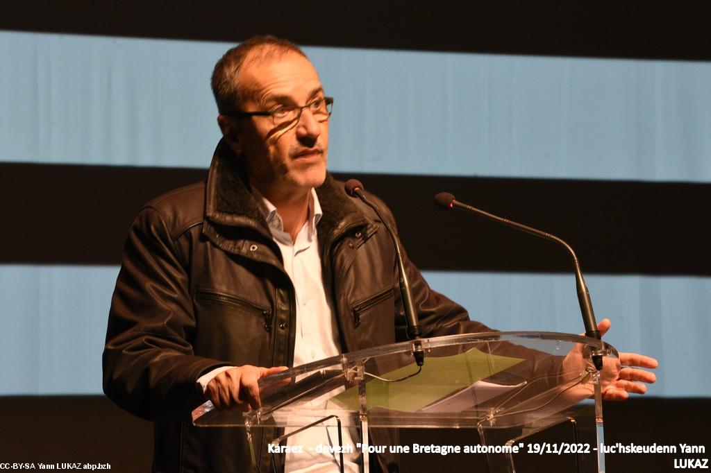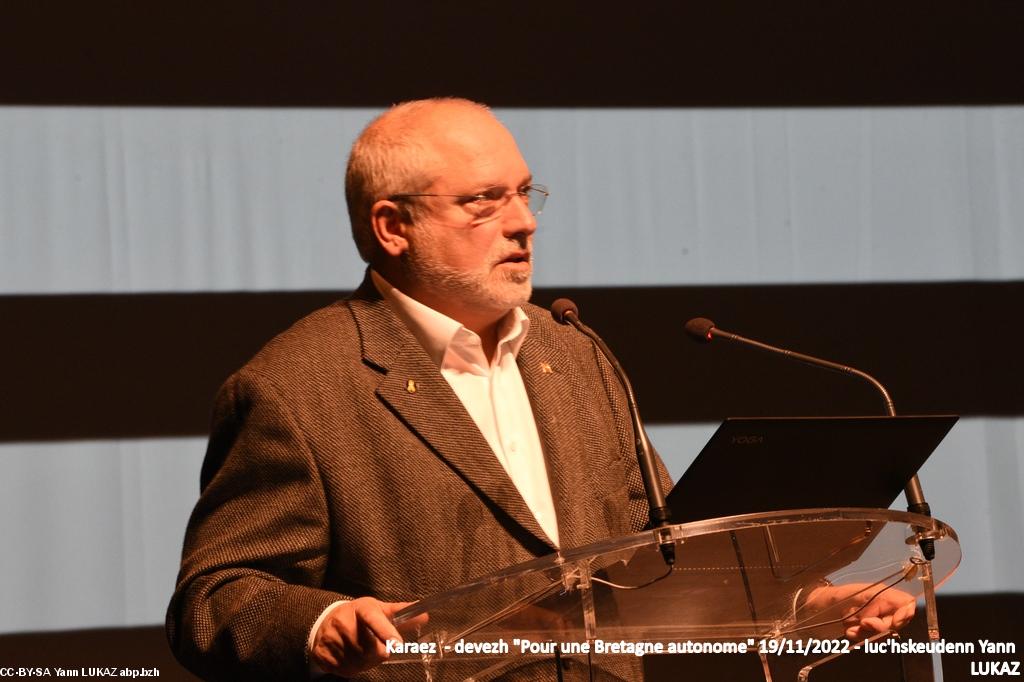 - Jean-Guy Talamoni, Avocat, ancien Président de l'Assemblée de Corse (2015-2021) était déjà venu à Carhaix. Il s'est présenté comme "nationaliste" et non pas comme "autonomiste", ce qui, en Corse et selon lui, est bien différent. Un retour d'expérience présenté avec clarté et honnêteté intellectuelle.