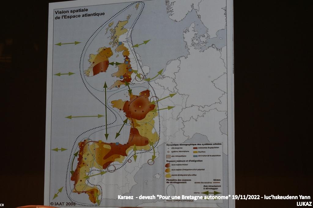 - Carte datant de 2013, présentée par Yves Lebahy et figurant géographiquement le projet d'"Arc Atlantique"..Aujourd'hui les régions atlantiques semblent déshéritées en Europe et pas seulement en France, comme laissées volontairement à l'écart.....Là aussi les autonomies ont leur mot à dire et surtout leur carte à jouer.