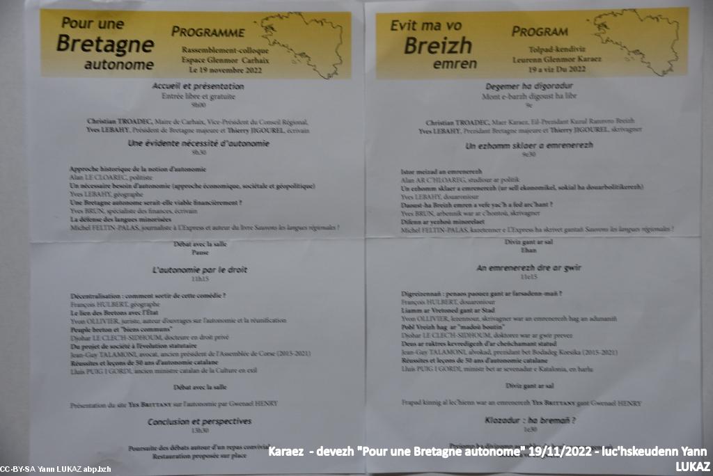 - Journée "Evit ma vo Breizh emren" / "Pour une Bretagne autonome".. Programme avec liste des intervenants et thématiques abordées.