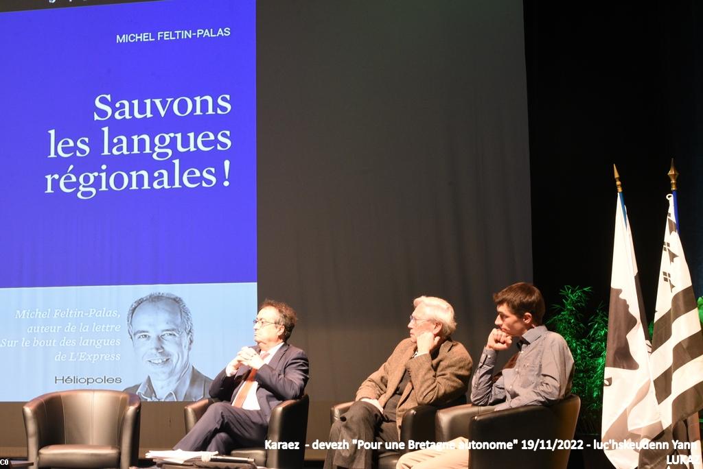 .3 c’est un voeu voté au Conseil régional de Bretagne qui donnait un intérêt tout spécial à cette journée. Journée marquée en creux par l’absence des figures politiques de la Région, de quelque bord qu’elles fussent. Ces pennou-bras se sont désistés (faut-il dire « dégonflés » ?) face à une initiative émanant de la société civile. On notera, toutefois, la présence d’un député très connu pour son engagement en matière de défense de la langue. Mais les autres ? Peur de la nouveauté ?