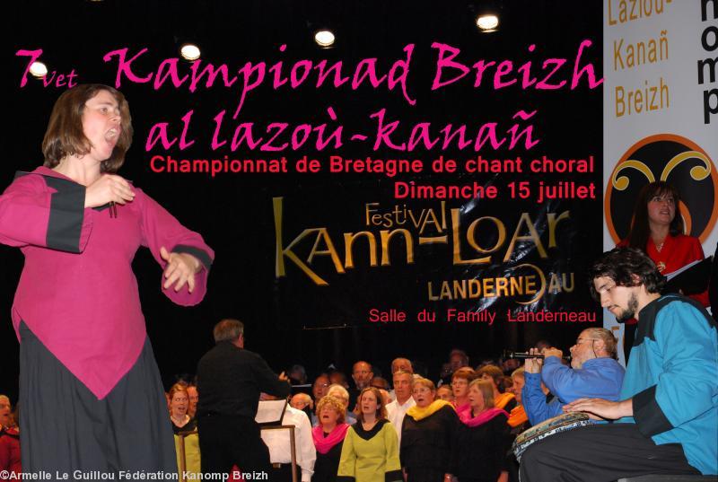 Le 7e Championnat de Bretagne de Chant Choral se déroulera le dimanche 15 juillet 2012, dans le cadre du Festival Kann al Loar de Landerneau.Comme chaque année, les chorales se retrouveront sur la scène du Family pour une joute chantée en langue bretonne, organisée par la fédération Kanomp Breizh. Cet événement majeur de l'année chorale met en valeur, à la fois le patrimoine chanté de Bretagne dans l'expression de ses différents terroirs, et la création contemporaine.