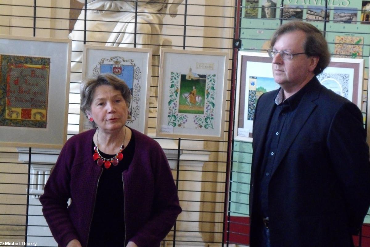 - concours d'enluminures Tro Breizh d'Anne de Bretagne : Monig Loosen-Baron, ICB, organisatrice, et Jaques-Yves le Touze, président du Comité Anna Breizh 2014