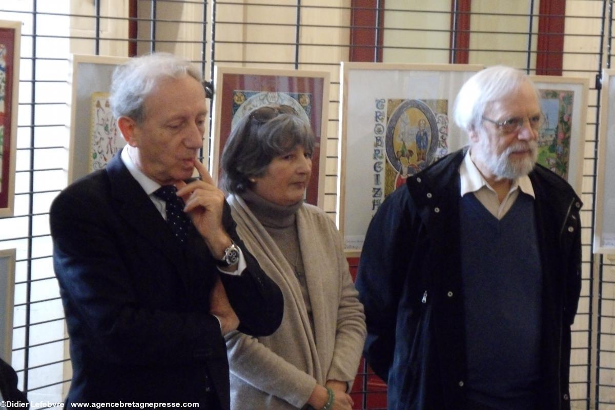 - concours d'enluminures Tro Breizh d'Anne de Bretagne : Gabriel Sauvet, adjoint au maire de Vannes, Odile Duramy, enlumineure membre du jury, et patrig Malrieu, Président de l'ICB