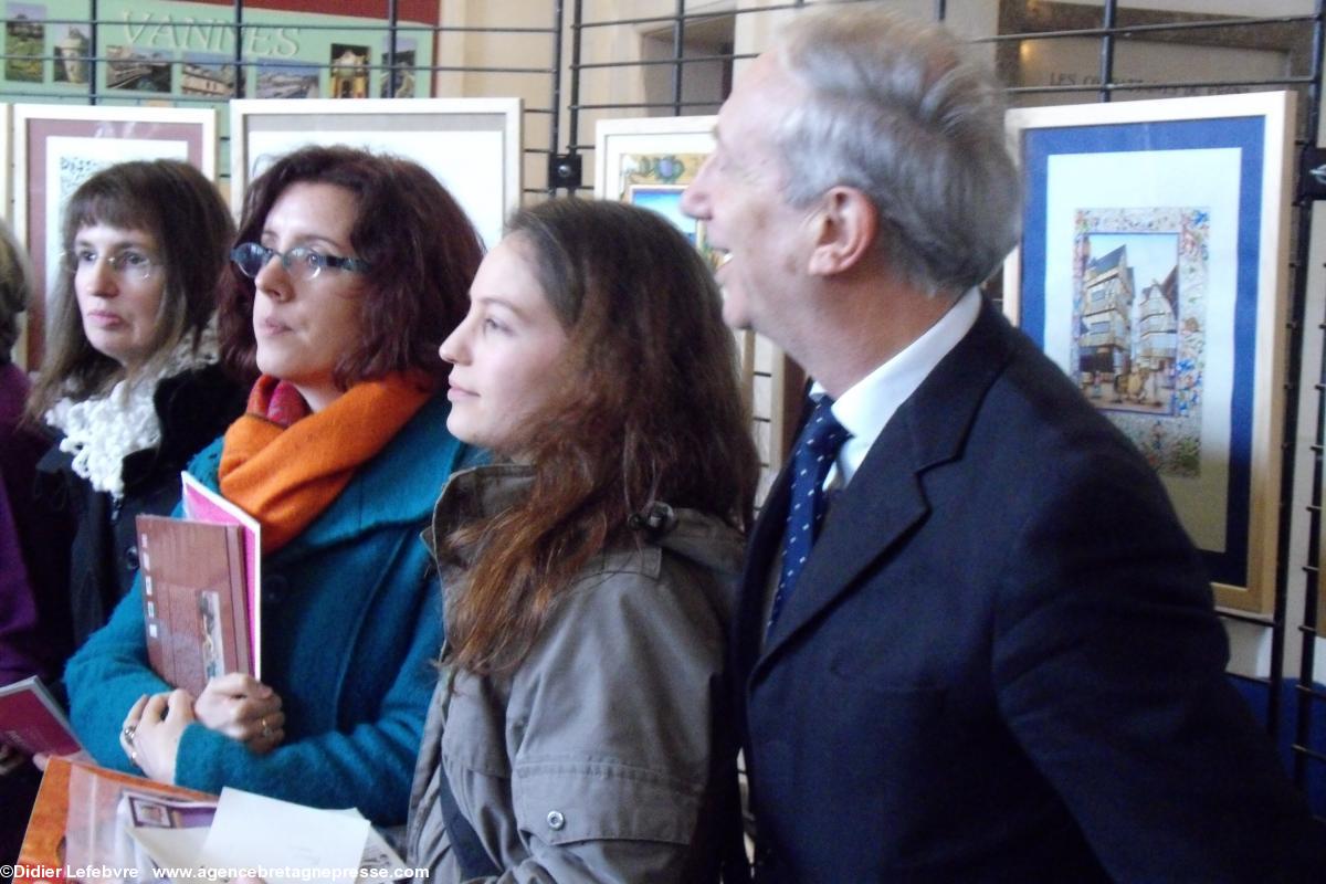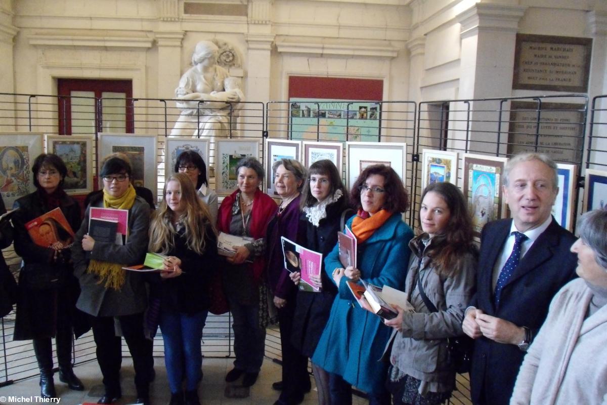 Elsa Millet http://elsa-millet.com/ championne de la catégorie professionnels, et Marthe Rougieux http://www.pigmentsetvermeil.com/ troisième de cette même catégorie honorent Nantes dans ce concours international d'enluminures organisé par l'Institut Culturel de Bretagne (ICB) http://www.culture-bretagne.org/. Les prix en ont été remis dans ce merveilleux Hôtel de Ville de Vannes http://patrimoine.region-bretagne.fr/sdx/sribzh/main.xsp?execute=show_document&id=MERIMEEIA56003469, sous le vitrail représentant le mariage de Anne de Bretagne avec Charles VIII, en présence de monsieur Gabriel Sauvet, adjoint au maire à la Culture, représentant aussi ici l'agglomération. Les présidents de l'ICB, Patrick Malrieu, et celui du Comité Anna Breizh, Jacques-Yves Le Touze, entouraient Monig Loosen-Baron, organisatrice.