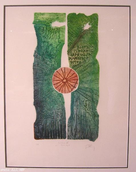Hans BINN a ensuite présenté le travail des dix artistes exposants, parmi la vingtaine de membres de l\'association : les photographes PAOLA, Gérard NICOL et Jean-Claude SEVELLEC, le graveur Michel LENORMAND, la plasticienne textile Brigitte POMMIER, les peintres Gigi LE MERDY, Christophe BREZELLEC, Jean-Loup LE CUFF et Marc BERNOL (nouveau Président de Spered Kelt), ainsi que Hans BINN lui même, artiste également membre de SPERED KELT car, ayant une résidence depuis plusieurs années en centre Bretagne, de nombreuses scènes et divers paysages Bretons inspirent son travail de peintre et graveur.