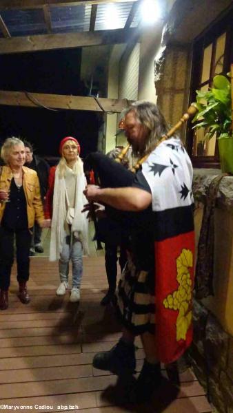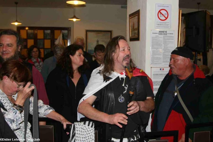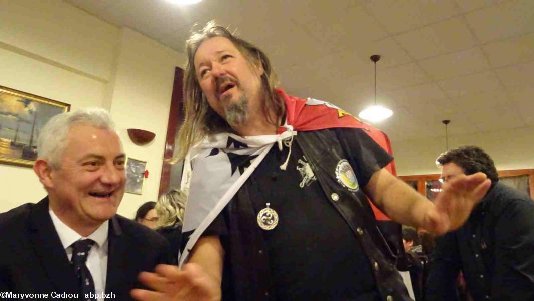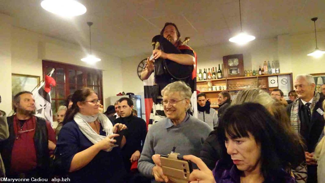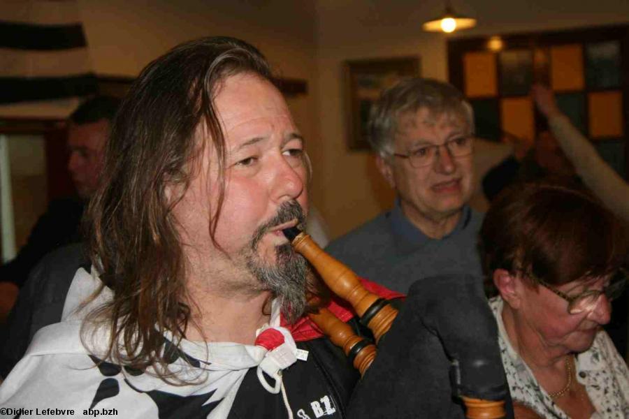 Nous avions déjà rencontré Danielle et Daniel, alias Miam Glouzik :. Son kig ha farz ne nous était pas inconnu. Mais mangé ainsi, dans une telle ambiance, c’est autre chose. Nous parlions de Daniel (le Monsieur, mari de Danielle, la Madame). Précisons un peu les choses. Elle, elle porte le chapeau. Sa fierté. Mais comment alors reconnaître le monsieur de la madame ? Daniel et Danielle ont trouvé la réponse. Lui portera la jupe. J’ai bien dit "jupe", je n’ai pas dit "kilt tartan". Trop classique. Et c’est donc en jupe plissée aux couleurs de notre drapeau, le Gwenn ha Du que Daniel a sonné, sonné, sonné, avec une pêche rare. À la veuze, à la fin du dépouillement, digne des soirées électorales les plus folles, il lança le Bro Gozh, repris en choeur, le Kan Bale Nevenoe de Glenmor sur une proposition de Michel Chauvin, le Son ar Chistr, le Bonsoir Maître de maison, des Sonerien Du des années 80, et les électeurs dansaient des An Dro...Aussi sur ABP…Clisson : une petite Tablée pour l’Homme, un grand pas pour la Bretonnité