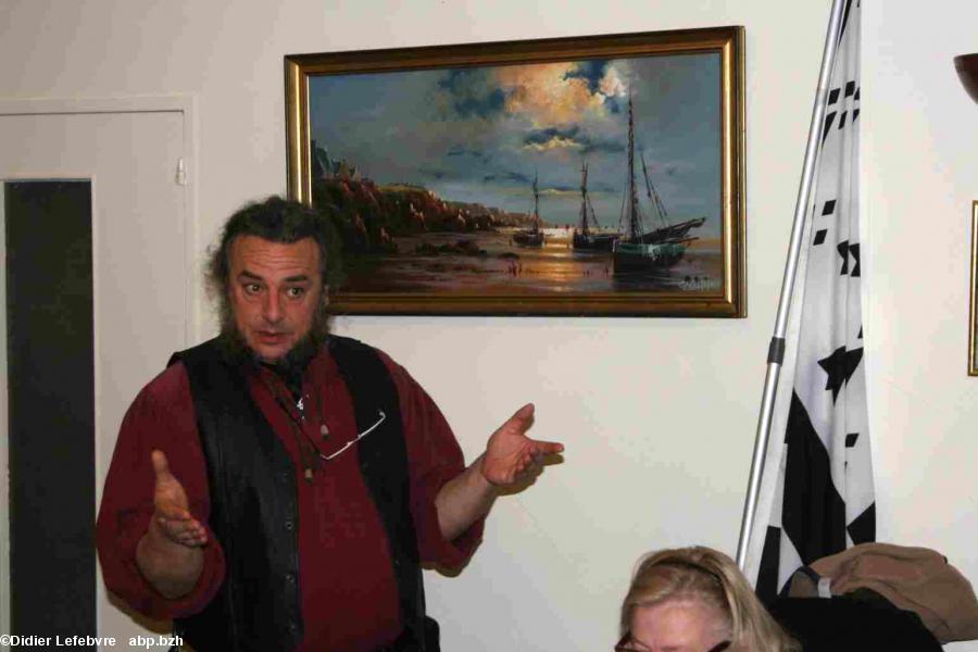 Pêchu et enthousiaste comme toujours, Jean-Loup Le Cuff (Yann-Vleiz pour les intimes), président de KAD (Kelc'h An Dael), accompagné de deux vices-présidentes, les très efficaces Odile Buton et Antoinette Costa, est venu présenter le projet de KAD. Il consiste en le réveil du Parlement de Bretagne, en sommeil depuis 1532, et à échanger des idées avec les sympathisants de la Cité des Ducs de Bretagne, et du Vignoble nantais voisin.