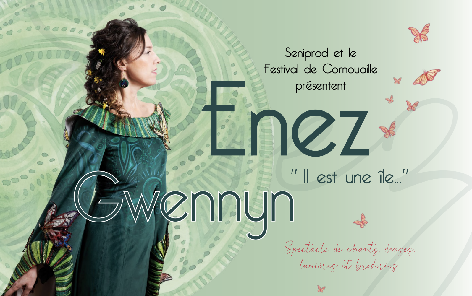 Gwennyn présentera avec ses artistes au Festival de Cornouaille bien plus qu'un concert, un spectacle original intitulé ENEZ. Une île en breton. Composé de chants bilingues, de danses, de lumières et même de créations de Pascal Jaouen, elle naviguera d’île en île. Comme Sylvain Tesson dans son voyage Avec les Fées Gwennyn a parfaitement compris et depuis longtemps que c'est ce littoral breton qui est le dernier refuge, pas uniquement des fées, mais de l'âme de l'ancienne Celtie. Ce paysage, rencontre des éléments primordiaux : terre, mer et air, n'a pas changé depuis 12 000 ans, même s'il recule et s'enfonce dans les terres depuis la fin de la dernière ère glaciaire et le réchauffement climatique. Ce littoral ne change pas dans sa splendeur virginale. Intouché par la révolution industrielle, la pollution, il est encore le lieu d'une biodiversité héritée du jardin d'Eden des Celtes. Il est aussi le lieu d'inspiration de Gwennyn où elle y rencontre ses muses, mais aussi Tristan ou Iseult, le roi Gradlon ou Dahut, Guenièvre, Morgana, le roi Artur et d'autres en quête de Graal. Pour Gwennyn, à l'horizon ce sont toujours des voiles blanches qui apparaissent.