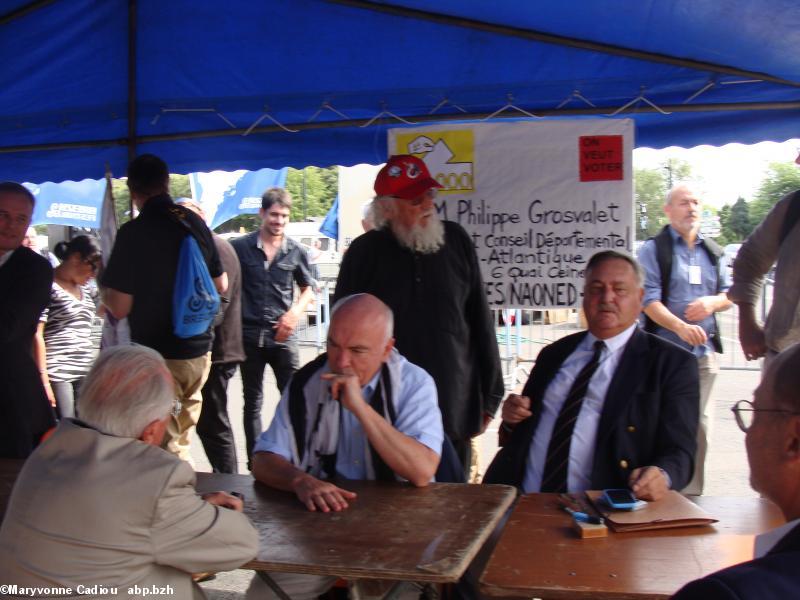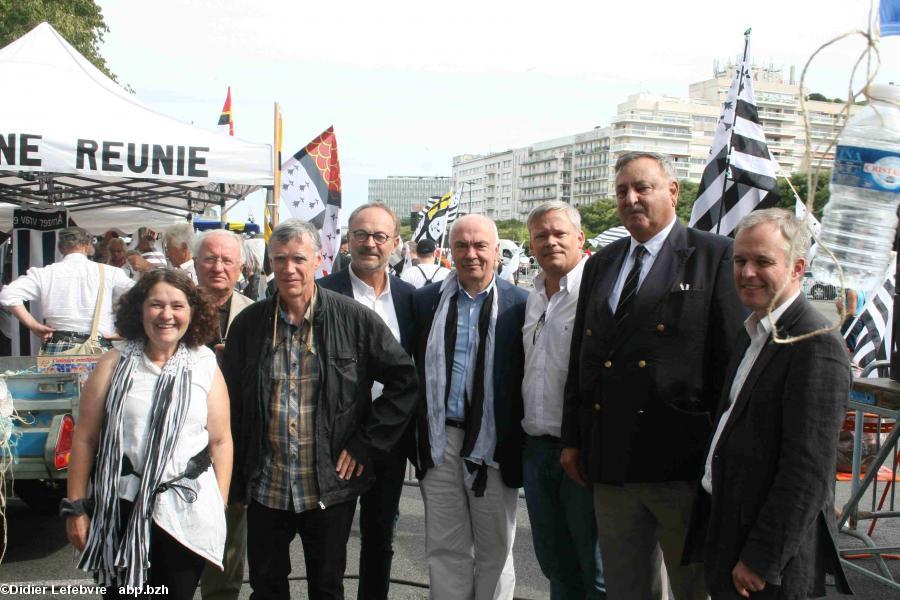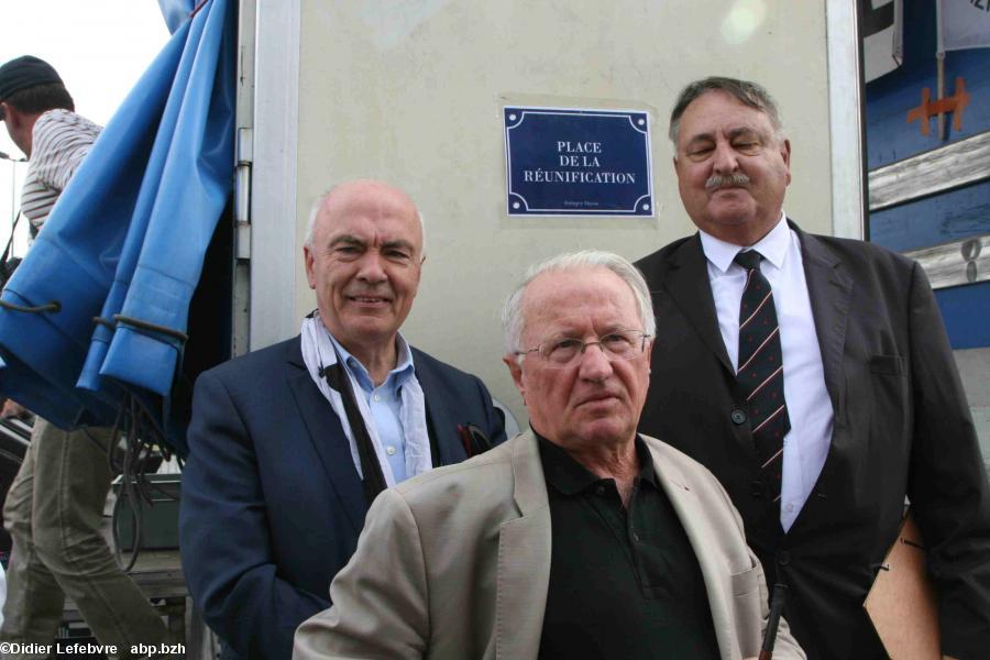 - La Breizh Manif 2016 : plaque "place de la Réunification" posée symboliquement. Le député Le Fur, l'ancien président du CG44 Mareschal à côté du président de Bretagne Réunie Le Bihan.