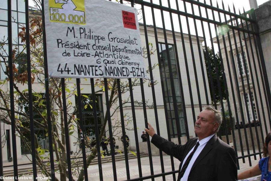 - La Breizh Manif 2016 : devant le CG44, l'enveloppe (voir photo suivante) attire les regards.