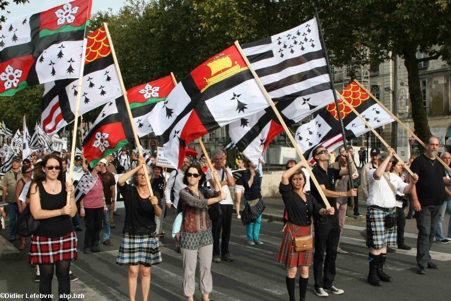 La communion avec les Gabonais est un raccrochage aux branches assez triste. L'UDB a, elle, déserté le terrain. Elle aussi, surtout elle, "de gauche", aurait dû avoir conscience de la possibilité d'un arrivage de Bretons aveuglés par la colère, dont la haine a été sciemment cultivée par le Jacobinisme fanatique. Mais, apparemment, rien n'avait été prévu comme alternative. Ou alors déconnexion envers une certaine frange de la société vers laquelle elle a du mal à être constructive ? Des banderoles, des chants, un positionnement dans le cortège, une capacité à ne pas répondre aux provocations de ces Bretons perdus... Alors l'UDB peut bien se cacher derrière les organisateurs, son rôle en tant que seul parti breton avec des réseaux des professionnels de la politique était de rester aux côtés de ceux qui défilent. Ces Bretons, que j'ai du mal à qualifier de simplement extrême-droite ou fasco, ce n'est pas aussi simple quand ce n'est pas pour un Etat-Nation, il y a autre chose, ont en tout cas voulu voler le défilé. C'est inadmissible. Et malheureusement, dans les faits, ils ont réussi. Et doivent bien rire en pensant que l'UDB s'est défiler... C'est d'une tristesse que le mouvement breton en soit arrivé là. C'était malheureusement prévisible depuis une bonne quinzaine d'années. C'est en train d'arriver. Et aujourd'hui, difficile de prévoir autre chose qu'une accélération de ce fait.