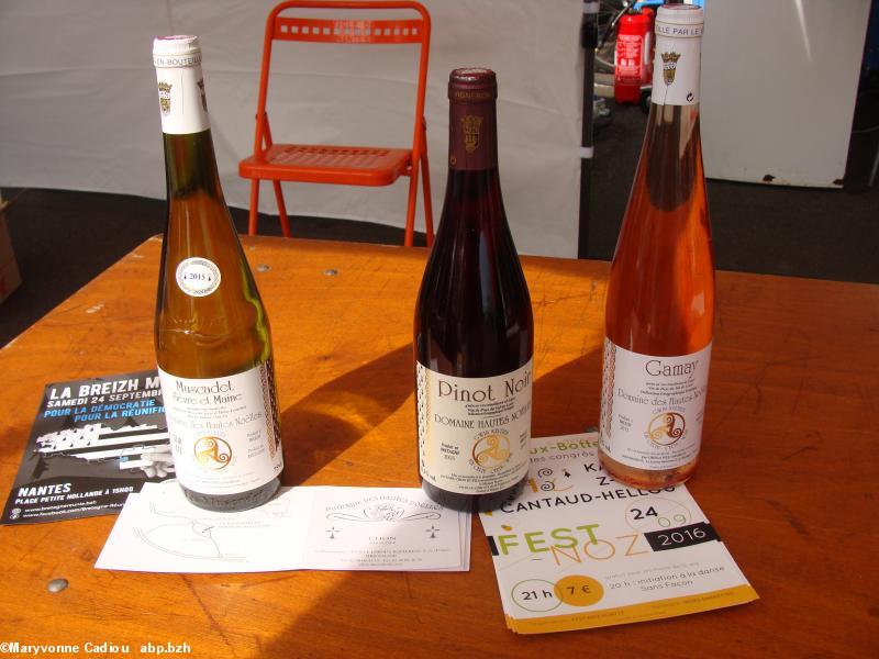 - Breizh Manif 2016. Les vins du Domaine des Hautes Noëlles (Chon) avec les étiquettes à triskell doré.