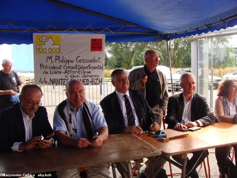 - Breizh Manif 2016. Prêts pour la conférence de presse. De g. à dr. Joël Guerrriau, sénateur-maire de St-Sébastien/Loire, Marc Le Fur, J.-F. Le Bihan, P. Mareschal, Fr. de Rugy, J. Devriendt.