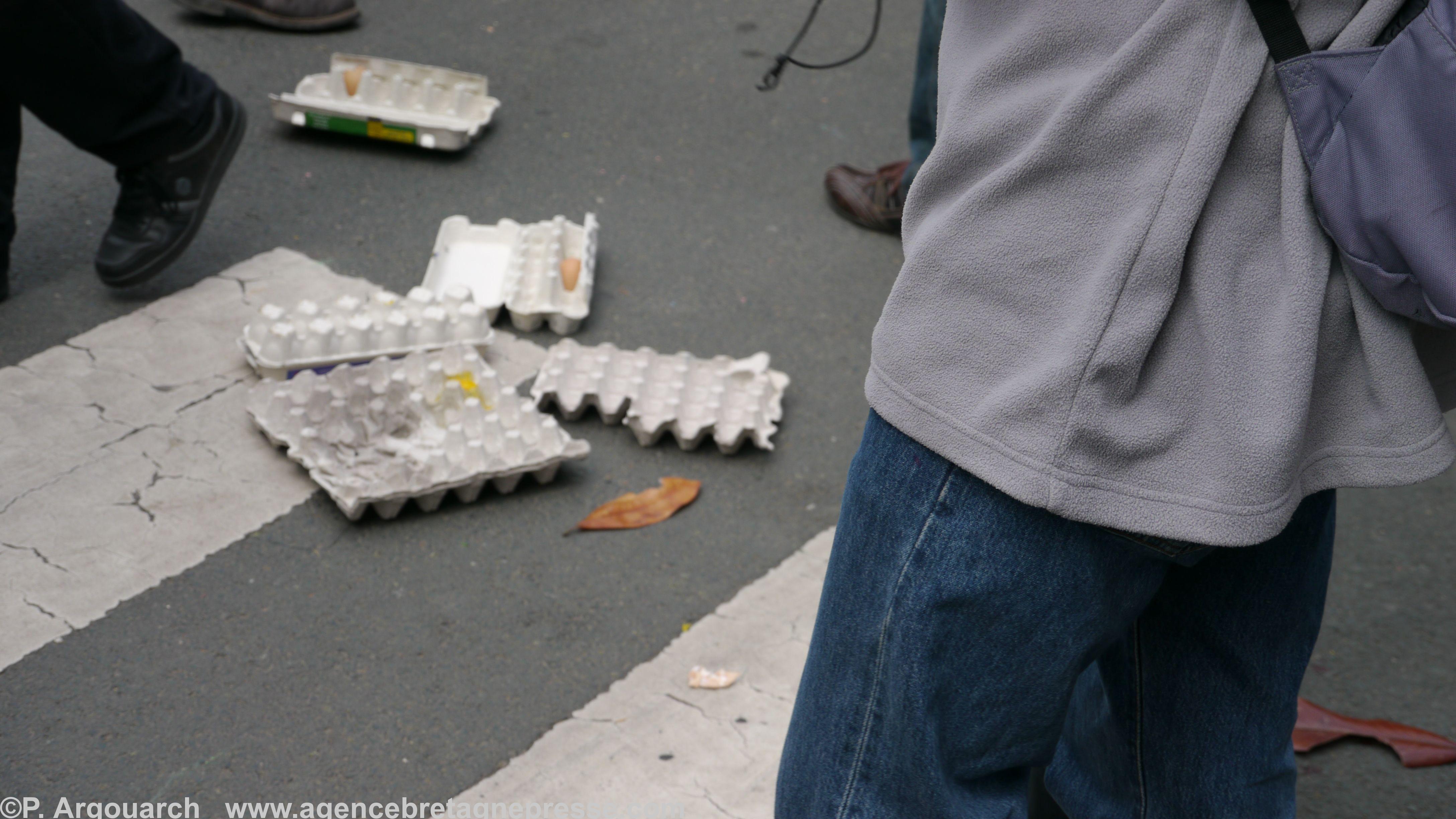 Devant l'Hôtel de région la tension est montée d'un cran quand de jeunes manifestants plus radicaux ont lancé des œufs et des boules de peintures sur les bâtiments. Les CRS, qui en protégeaient l'accès ont interpellé un manifestant. Il a été relâché dans la soirée.