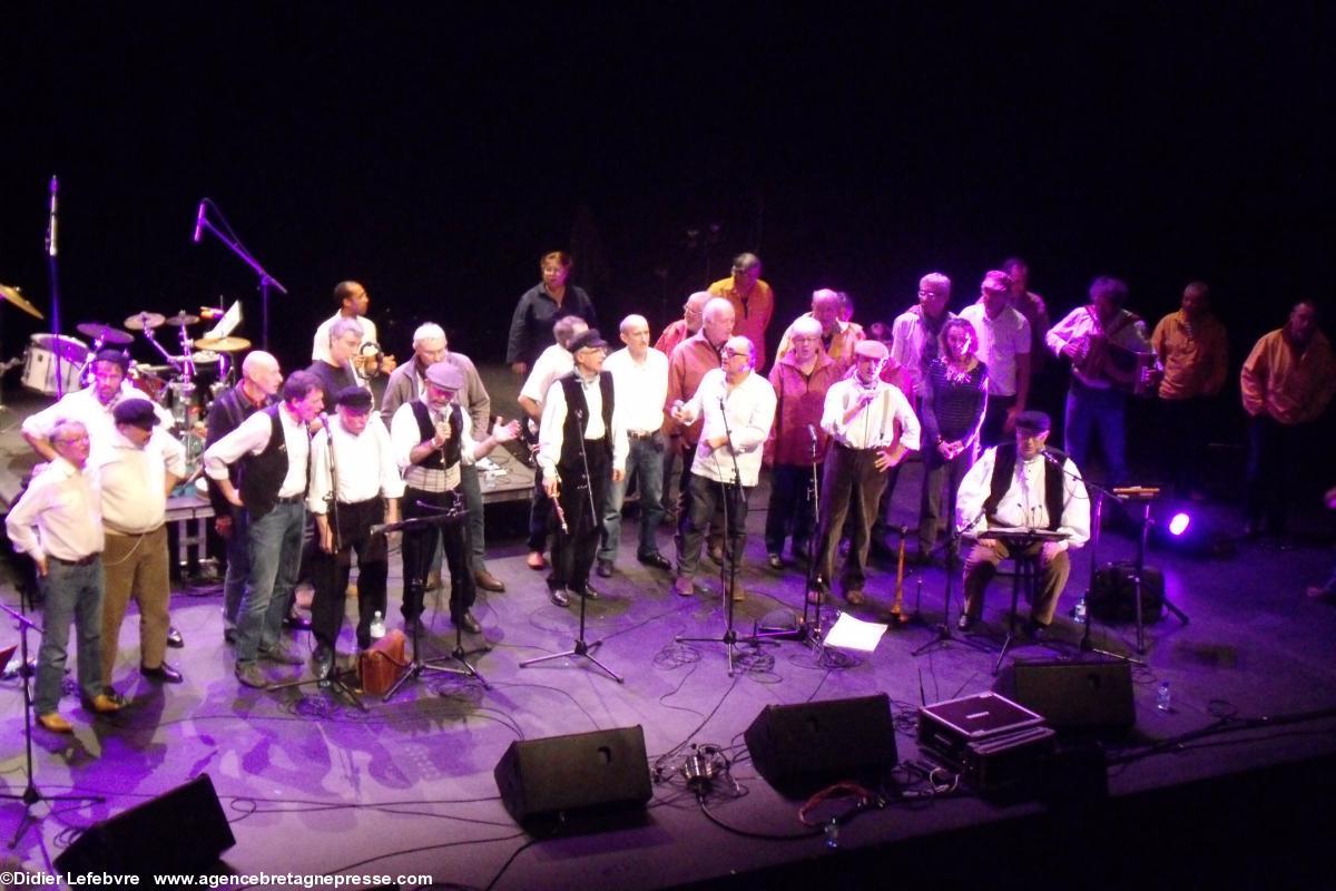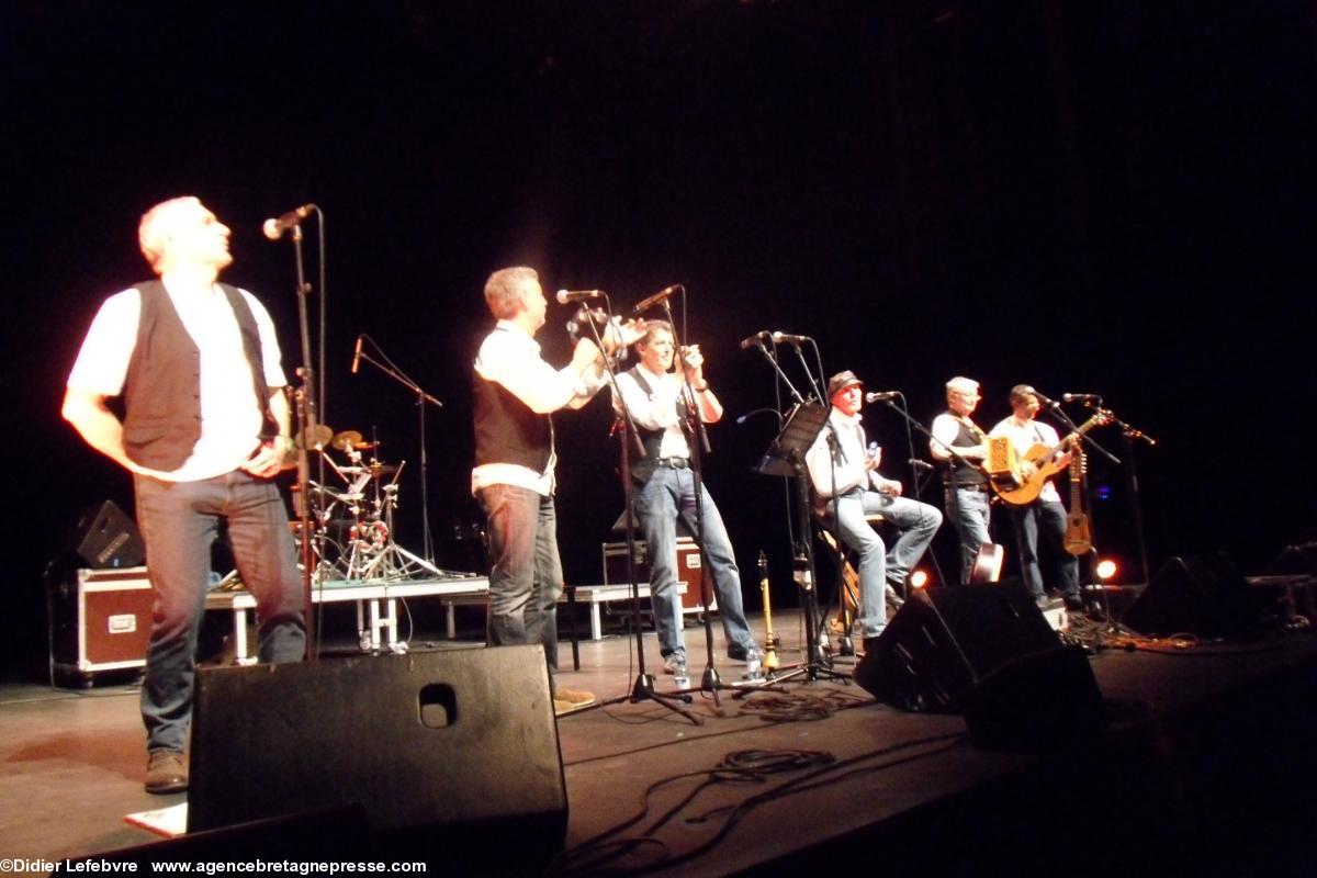 Pour ces marins et mariniers, venir à Orvault dans cette magnifique salle de l'Odyssée http://www.odyssee.orvault.fr/ ne fut pas une... aventure, tant nos compères ont l'habitude de se produire dans les salles de la région, et même au-delà.La Veuze et de la bombarde, instruments traditionnels déchaînent le public, enthousiaste. Pour conclure, repris en choeur par tous, Jean-François de Nantes, ce fameux gabier sur la fringante (Oh mes bouées!!!) qui n'est pas près d'oublier sa fin de campagne, après vingt mois de course. Le public peine à mettre les voiles. Sur scène, les quatre groupes l'ont bien compris, qui se retrouvent pour un final mémorable.