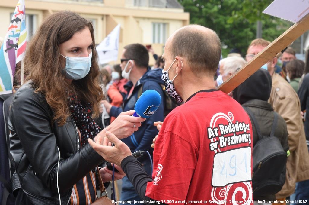 - Gwengamp, 29 mae 2021. manifestadeg evit ar yezh. Redadeg 2021. Interview radiophonique sur le terrain, atersadenn evit ar post-bihan war an dachenn