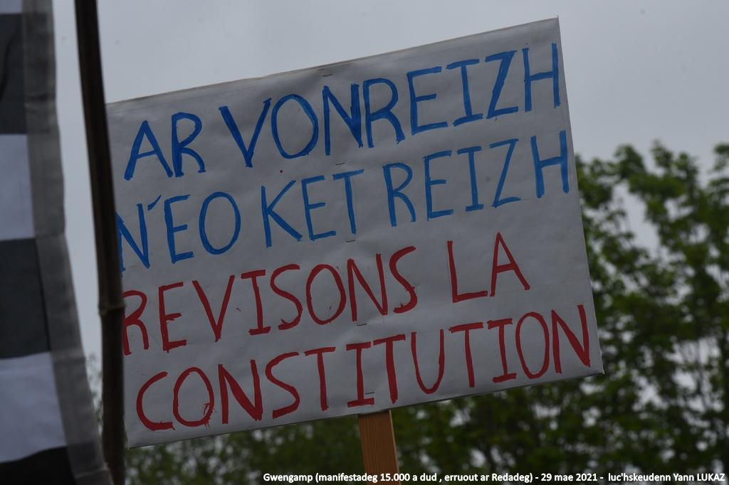 - Gwengamp, 29 mae 2021. manifestadeg evit ar yezh. Redadeg 2021. Une solution simple (proposée en Alsace): "art 1. le Français est la langue COMMUNE de la République". Cf loi "Toubon" 1994, a-enep ar saozneg, sañset, ha n'eo ket bet gwall-vat da geñver ar yezhoù all (reoù rannvroel).