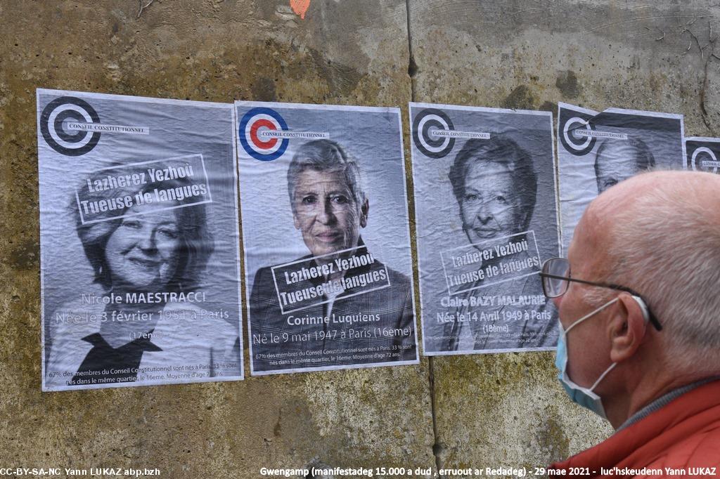 - Gwengamp, 29 mae 2021. manifestadeg evit ar yezh. Redadeg 2021. Une nouveauté historique dans la revendication démocratique en Bretagne: des affiches individuelles nominatives. Un darvoud nevez e Breizh: skritelloù mod-se.