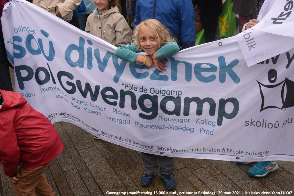 - Gwengamp, 29 mae 2021. manifestadeg evit ar yezh. Redadeg 2021. Brezhoneg evit an holl, ar re yaouank da gentañ. Du breton pour tous, à commencer par les tout jeunes