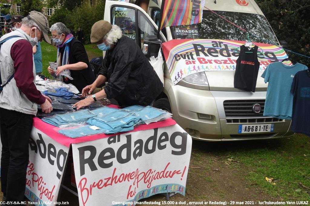 - Gwengamp, 29 mae 2021. manifestadeg evit ar yezh. Redadeg 2021. Kiosque d\'arrivée de la Redadeg, à Guingamp. Lecture alternative (par chacun des auteurs) de la poésie bretonne qui a voyagé dans le bâton-témoin. Lenn an destenn e brezhoneg digant he skrivagnerien. En arrière-plan, membre de l'équipe organisatrice de la Redadeg. Bravo à tous! Ur sapre mell labour zo bet graet!