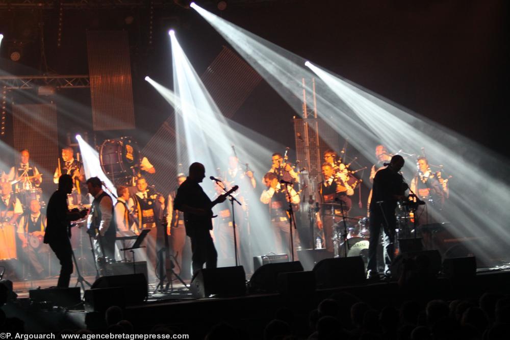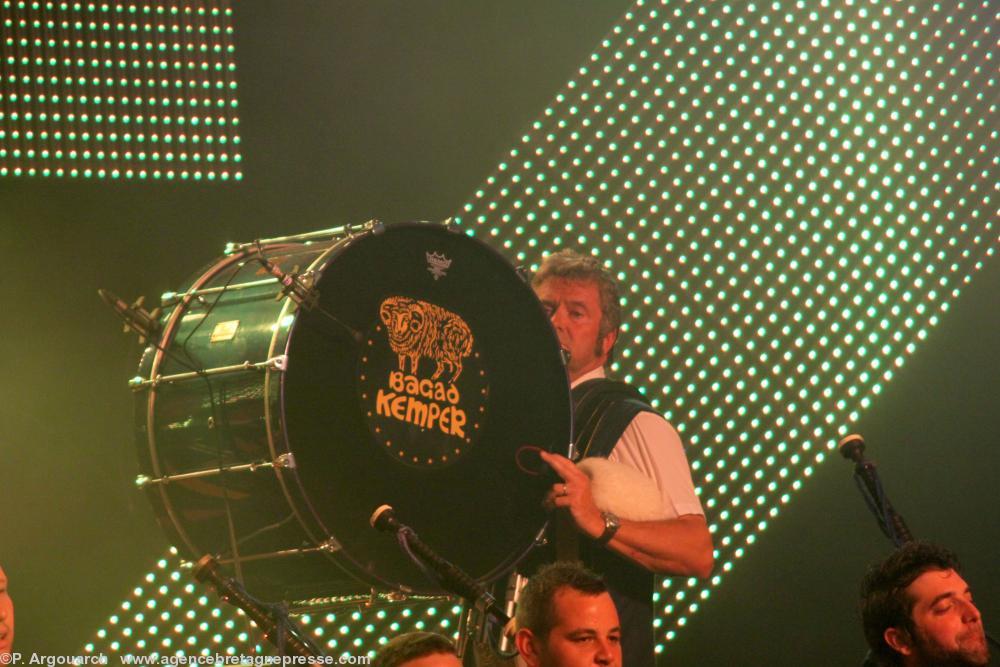 Louise Ebrel, la chanteuse bretonnne de kan ha diskan, fille d'une des soeurs Goadec était l'invitée de Red Cardell et du Bagad Kemper hier soir sur la scène Gradlon. Si la temperature avait baissé depuis mercredi dernier, ca a chauffé fort sous le chapiteau. Un débit de plusieurs mégawatts et une sono du tonnerre en plus de la puissance naturelle d'un bagad. On pouvait sentir le souffle des baffles dans les premiers rangs. Les Quimpèrois n'avaient pas besoin de tickets pour écouter d'autant plus que l'espace Gradlon est une immense tente ouverte à tous les vents et équivaut à un concert en plein air. Pour ses 80 ans, Louise Ebrel aura des souvenirs décoiffants !